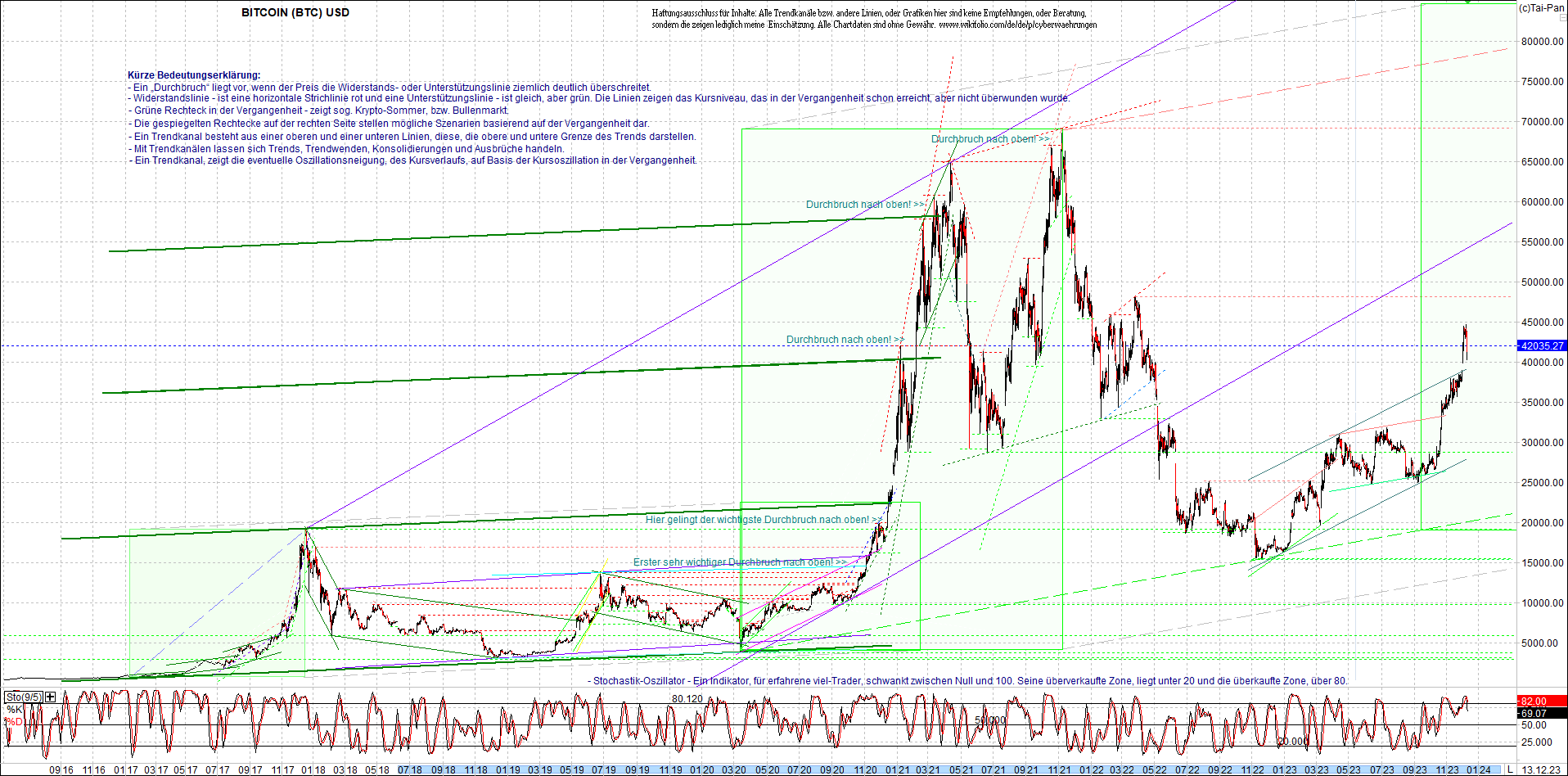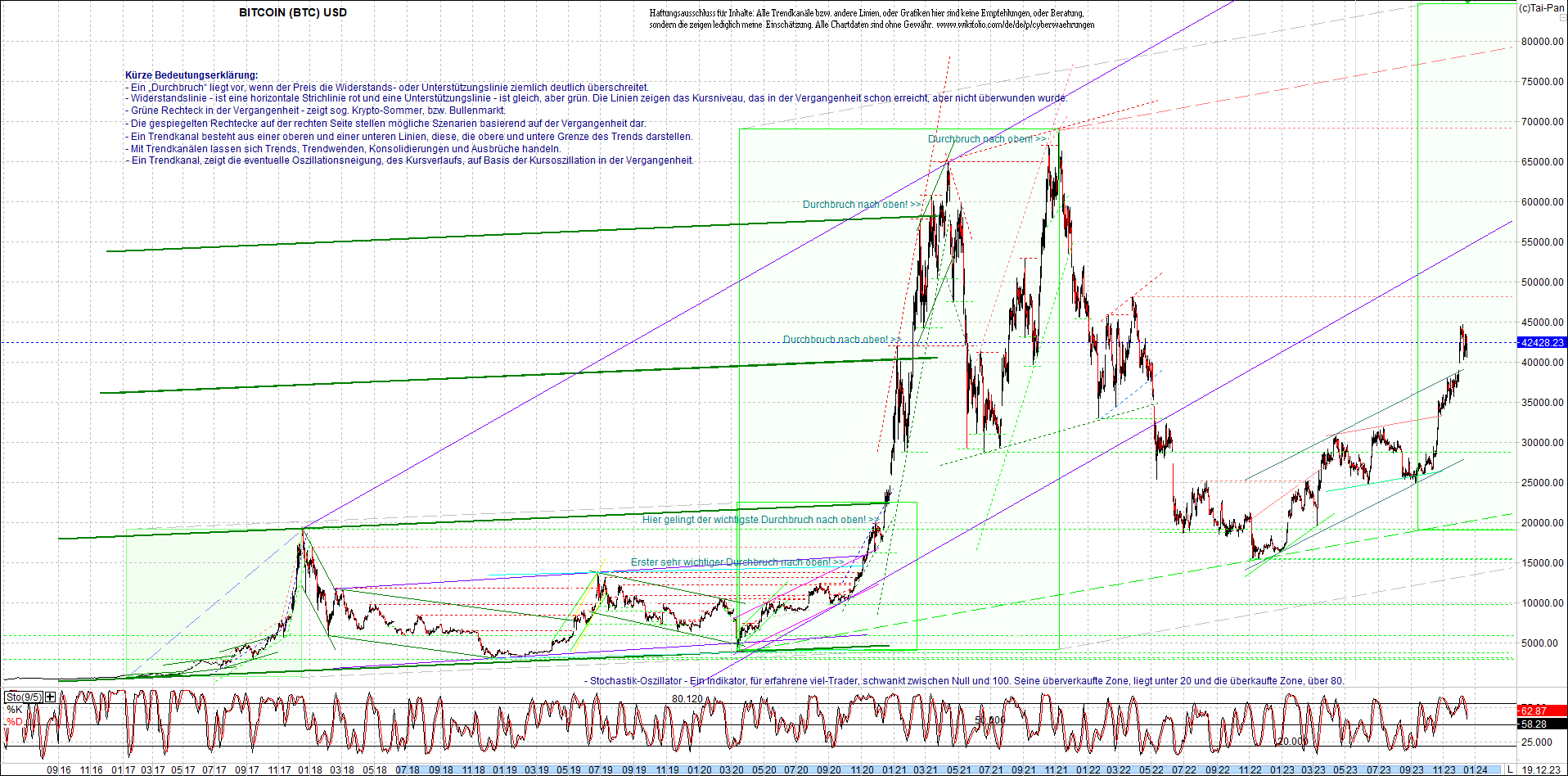 BITCOIN Chart am Abend, Oben Bitcoinzertifikat.