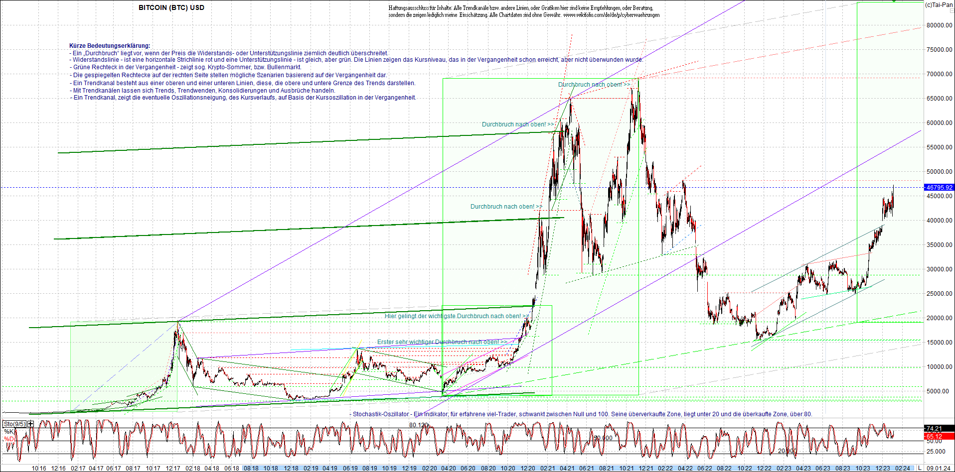 BITCOIN Chart am Abend, Oben Bitcoinzertifikat.