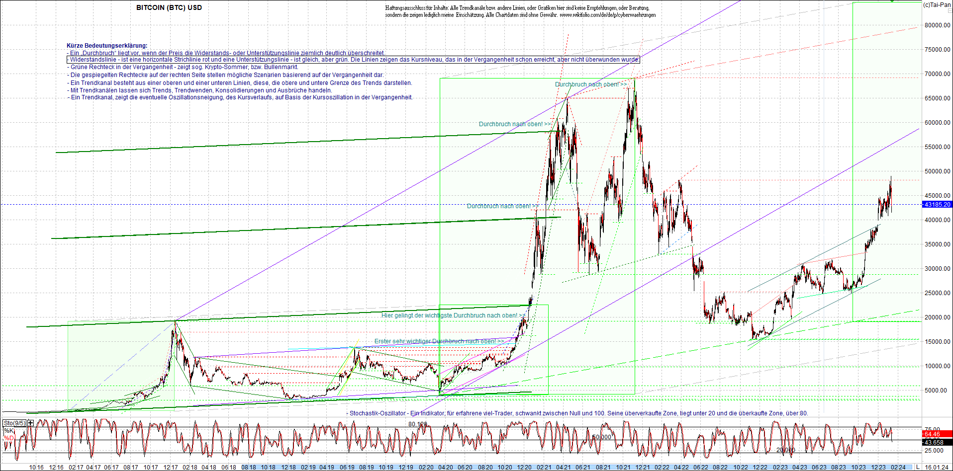 BITCOIN Chart am Abend, Oben Bitcoinzertifikat.