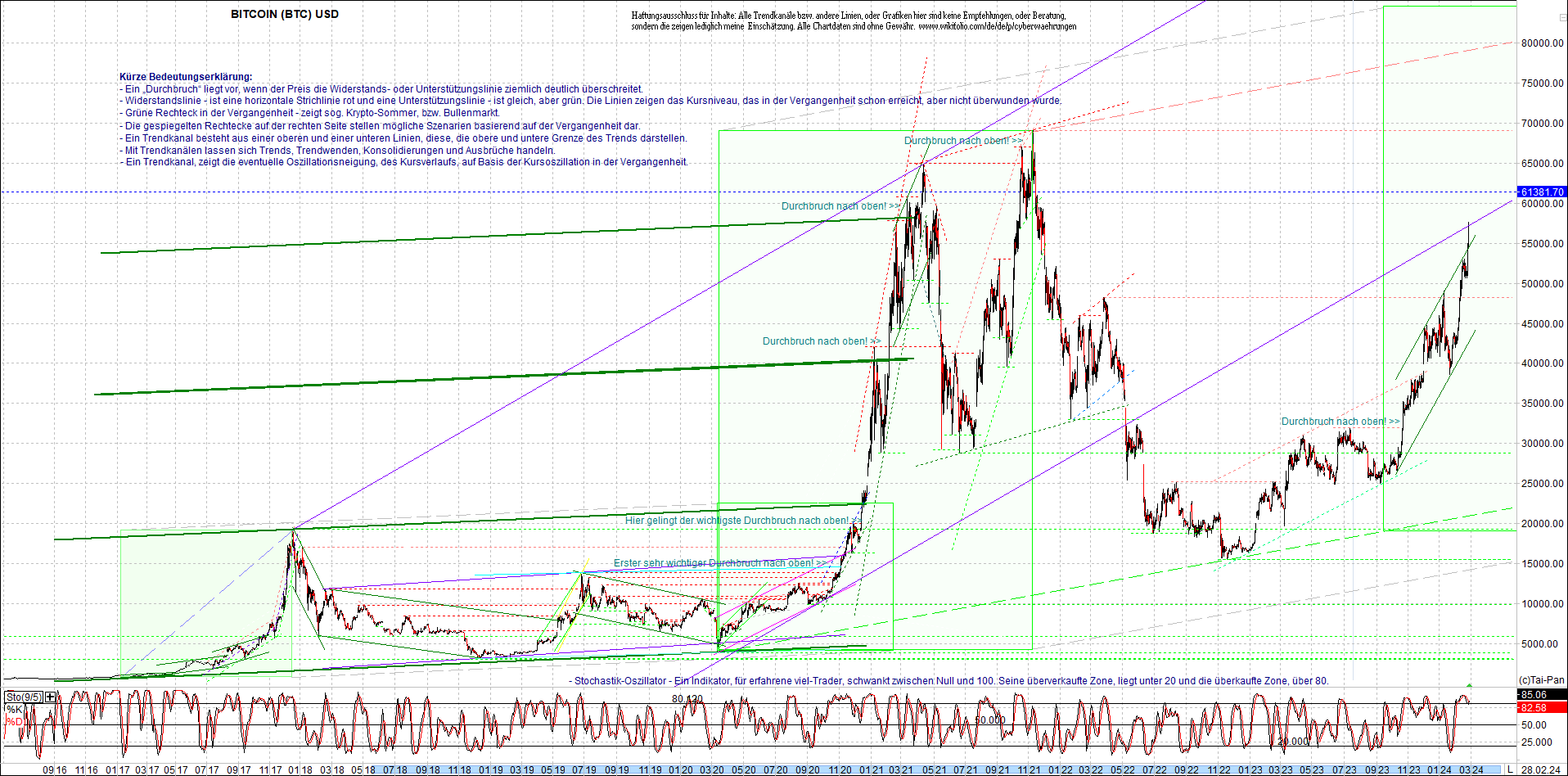 BITCOIN Chart am Abend, Oben Bitcoinzertifikat.