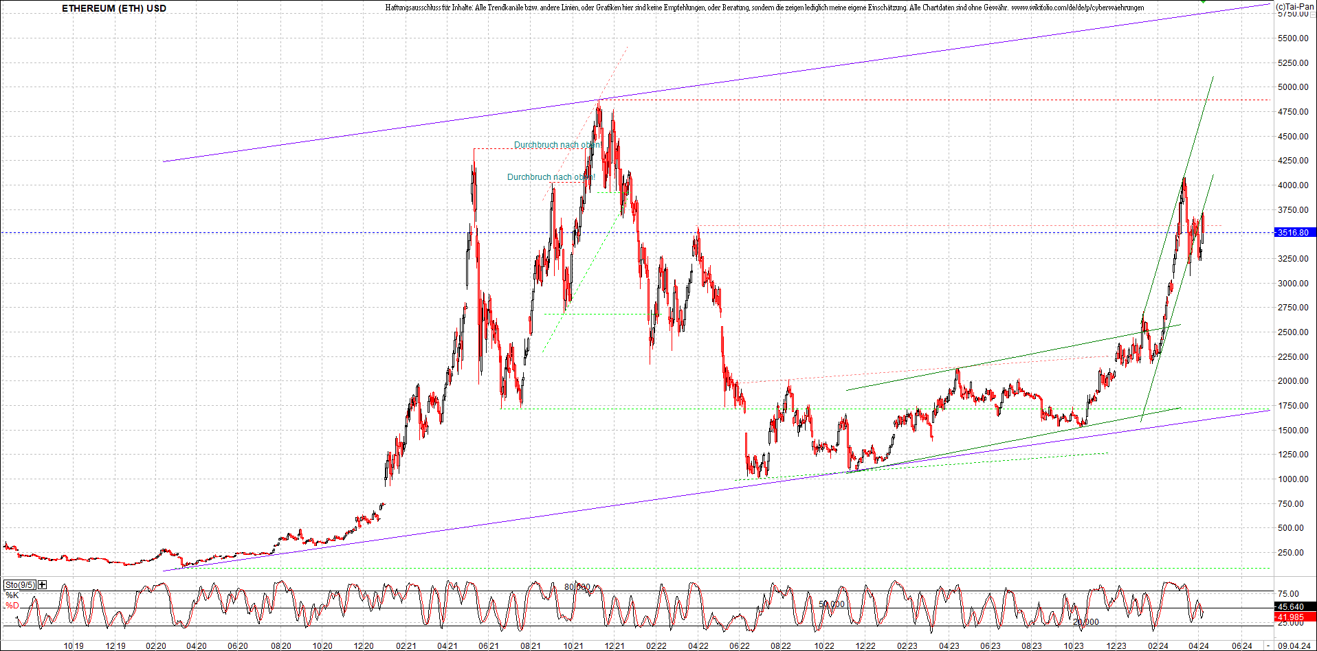 ETHEREUM Chart am Morgen, Oben Ethereumzertifikat.
