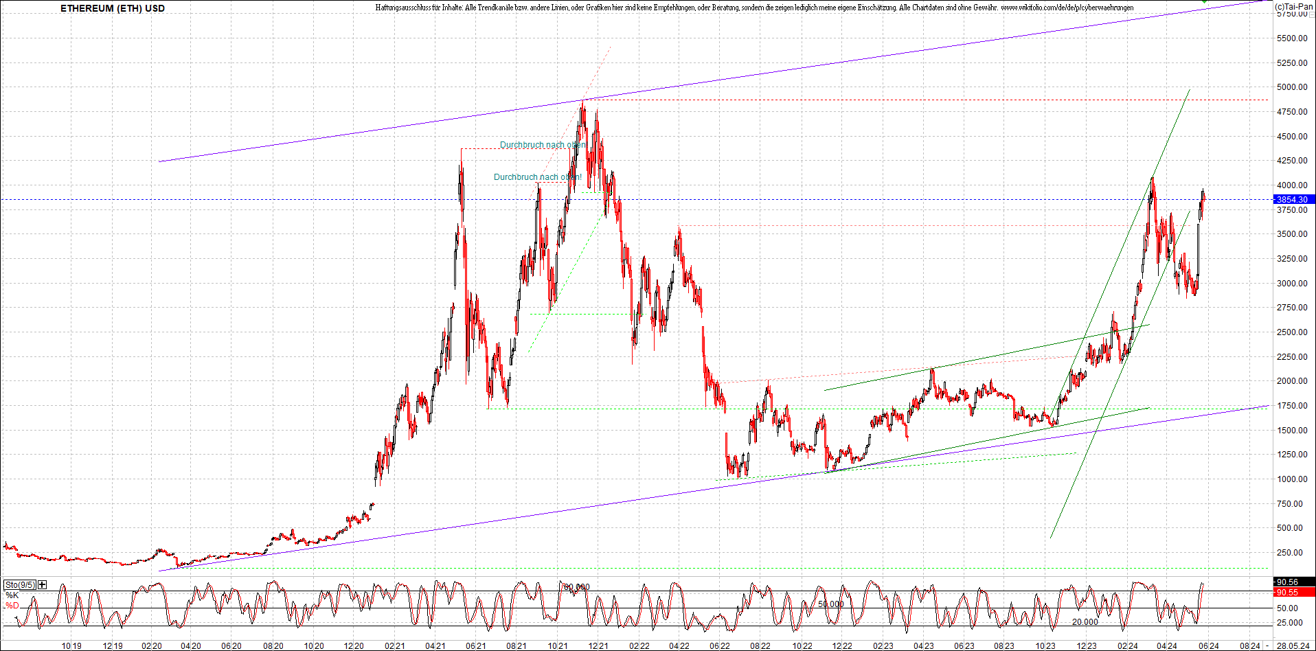 ETHEREUM Chart am Morgen, Oben Ethereumzertifikat.