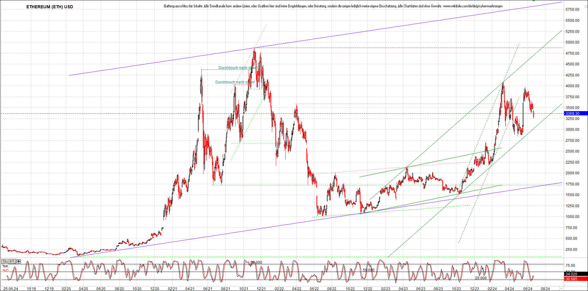ETHEREUM Chart am Morgen, Oben Ethereumzertifikat.