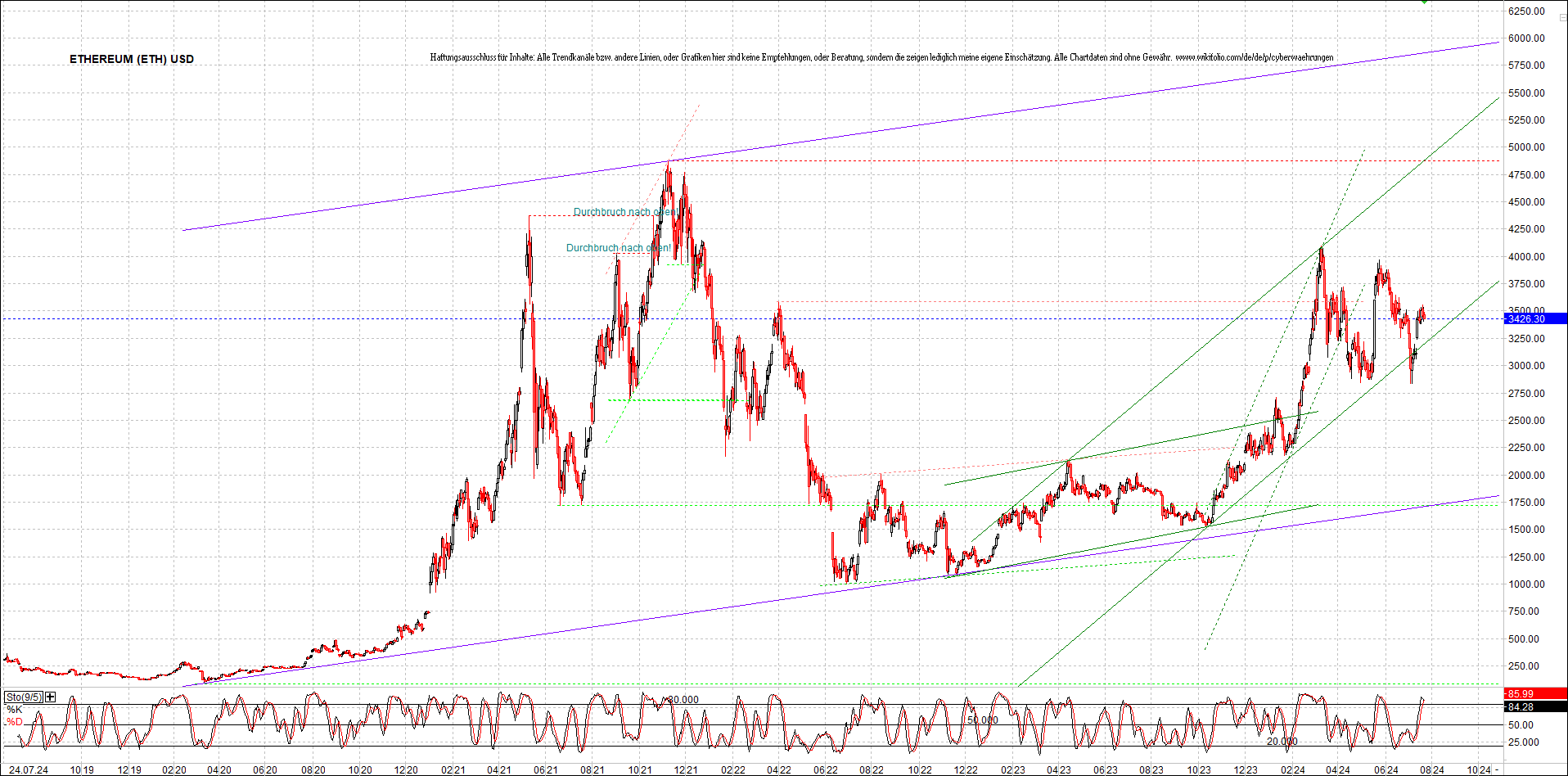 ETHEREUM Chart am Morgen, Oben Ethereumzertifikat.