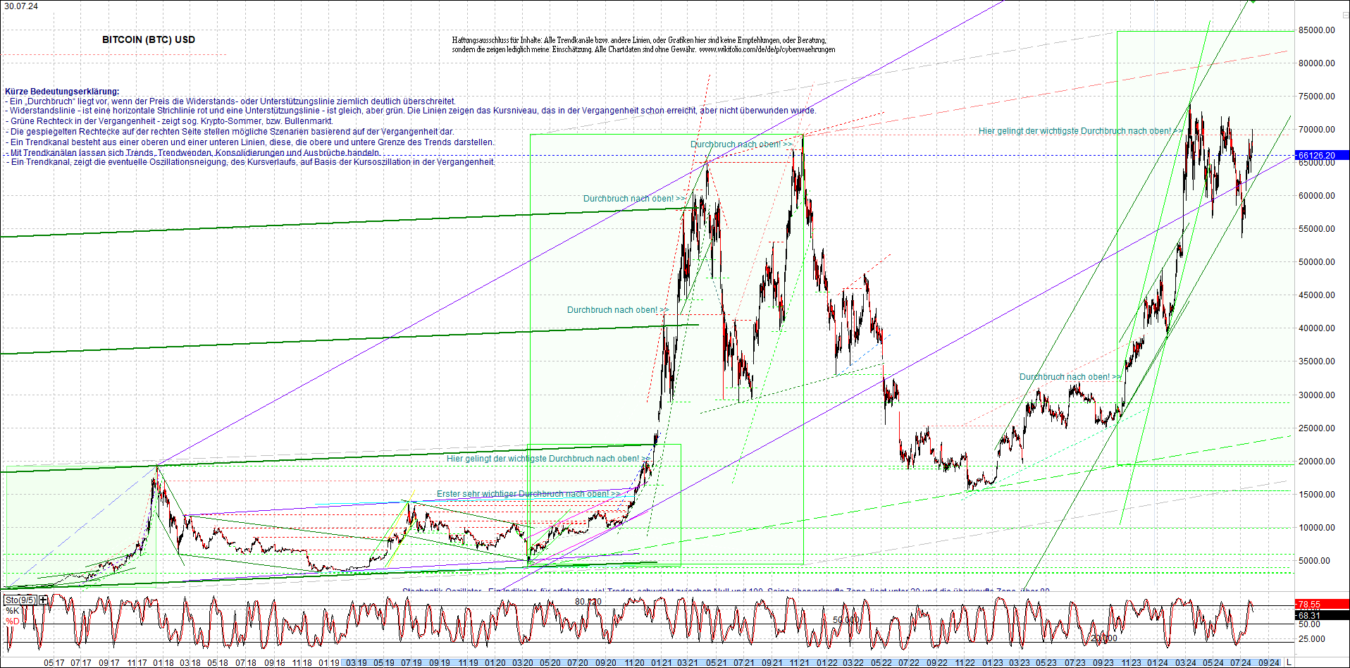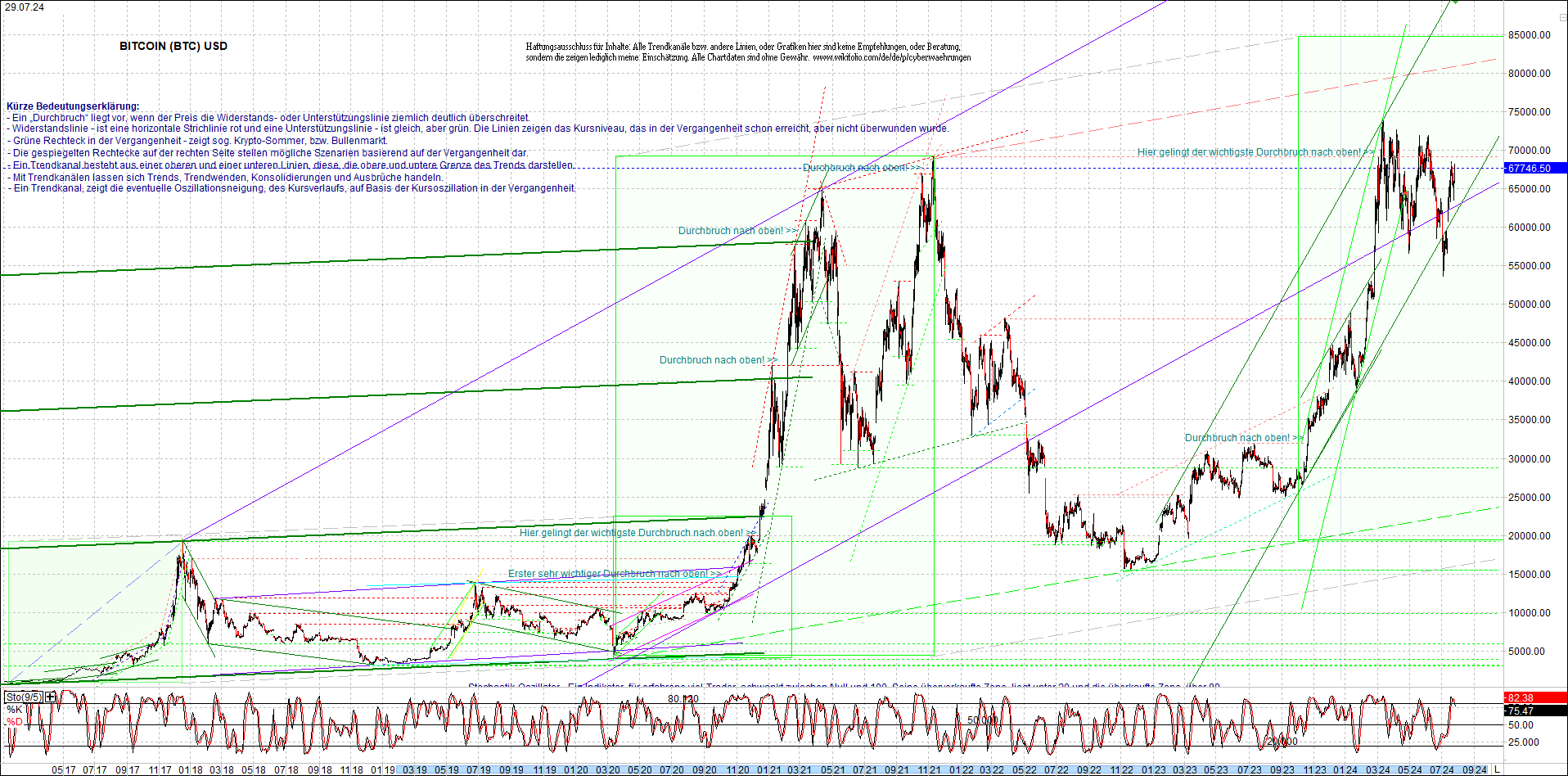 BITCOIN Chart am Abend, Oben Bitcoinzertifikat.