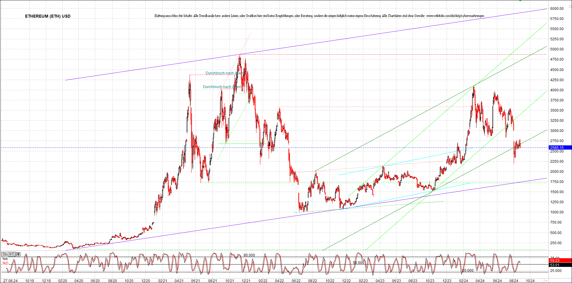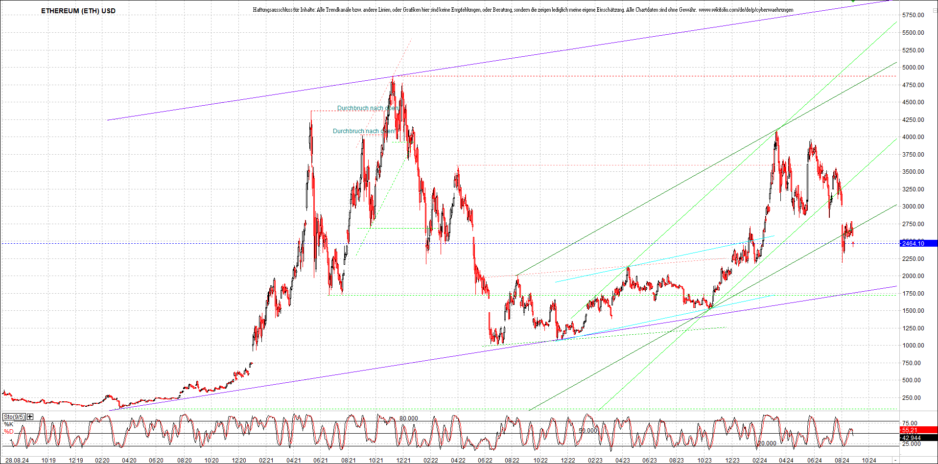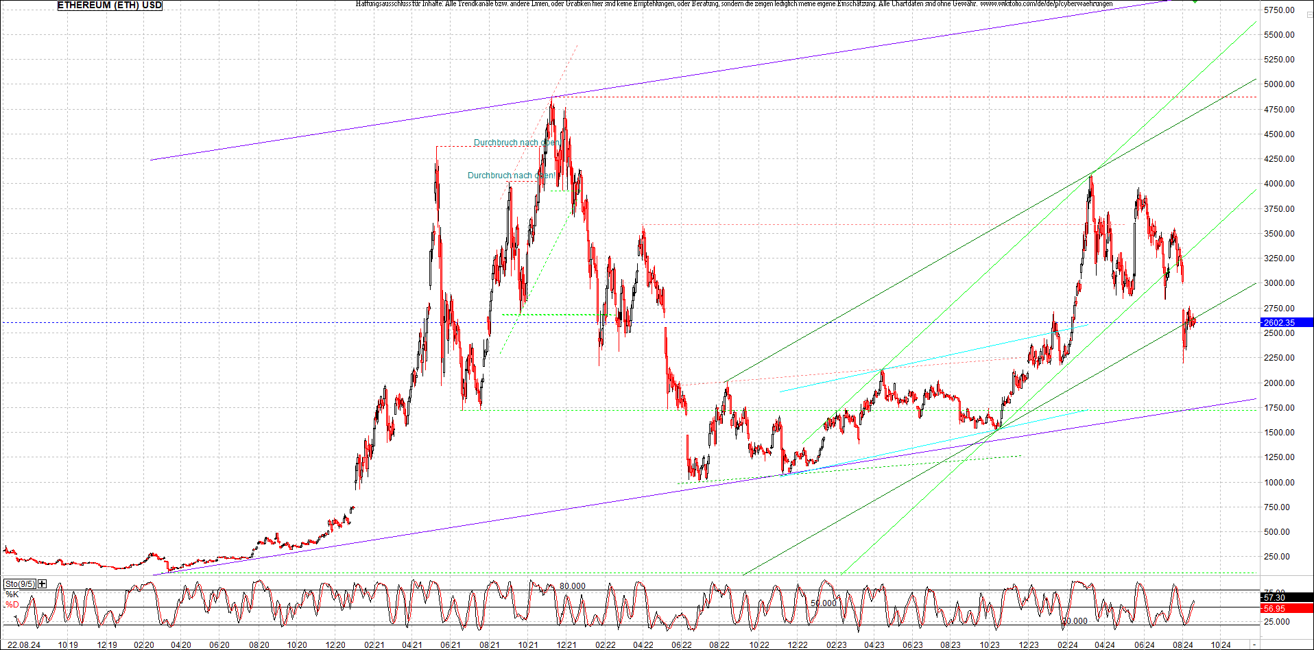 ETHEREUM Chart am Morgen, Oben Ethereumzertifikat.