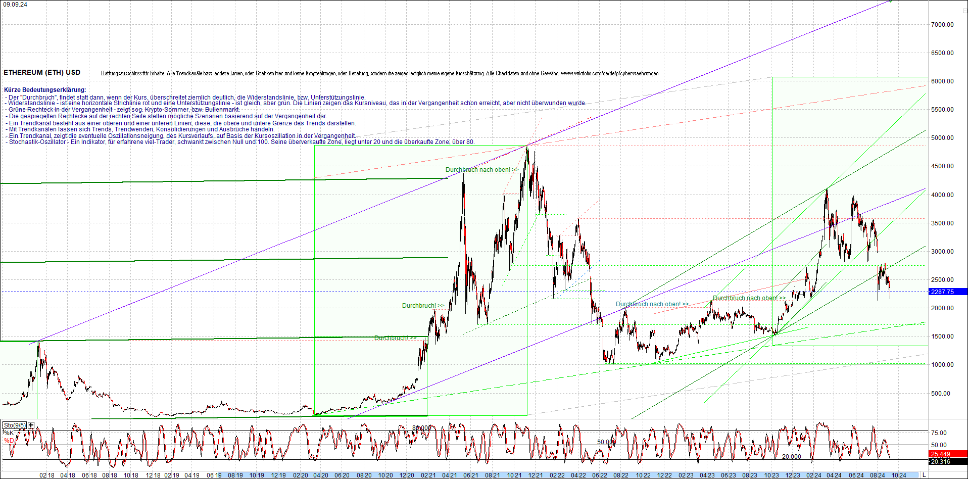 ETHEREUM Chart am Morgen, Oben Ethereumzertifikat.