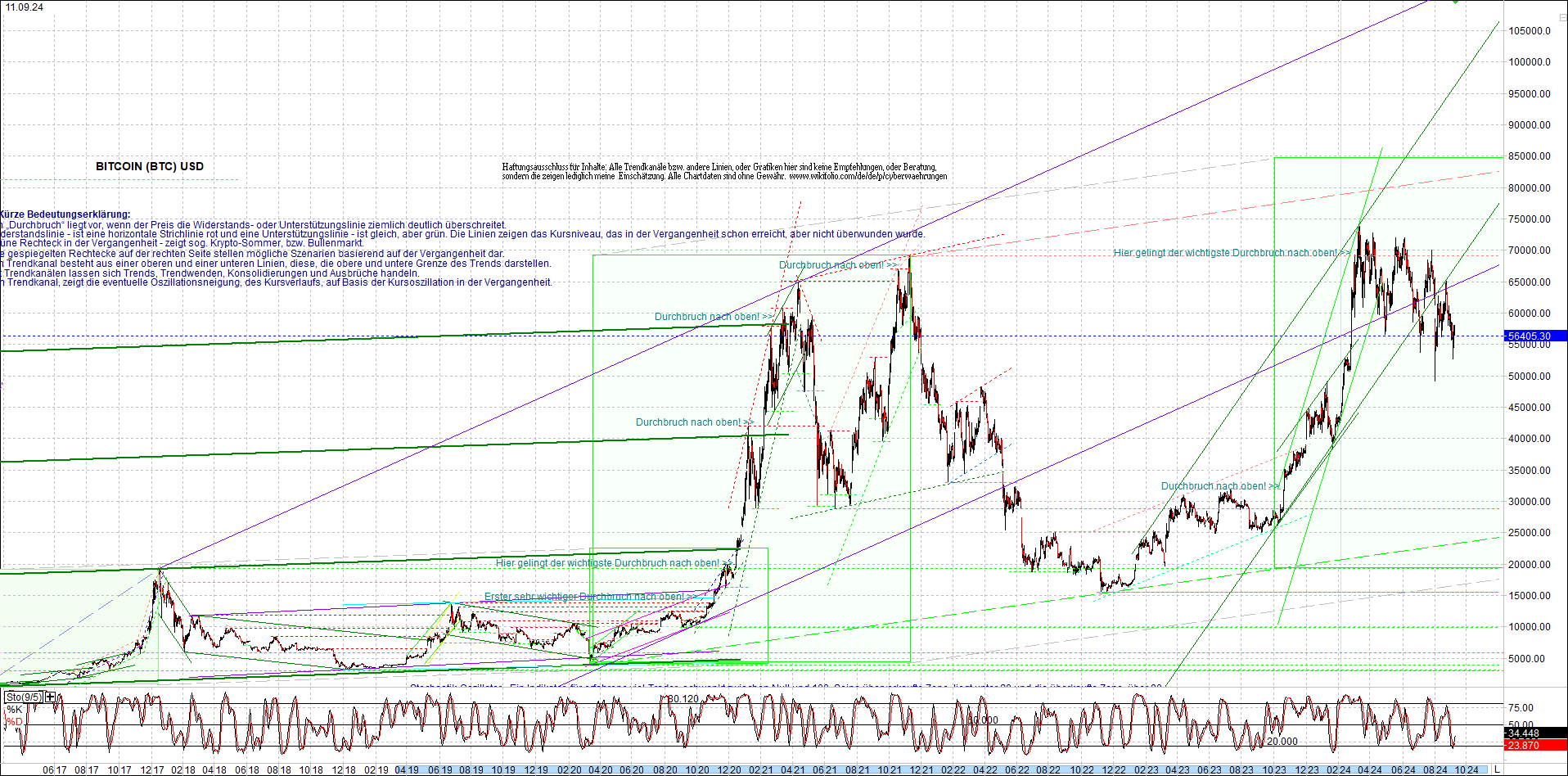 BITCOIN Chart am Abend, Oben Bitcoinzertifikat.