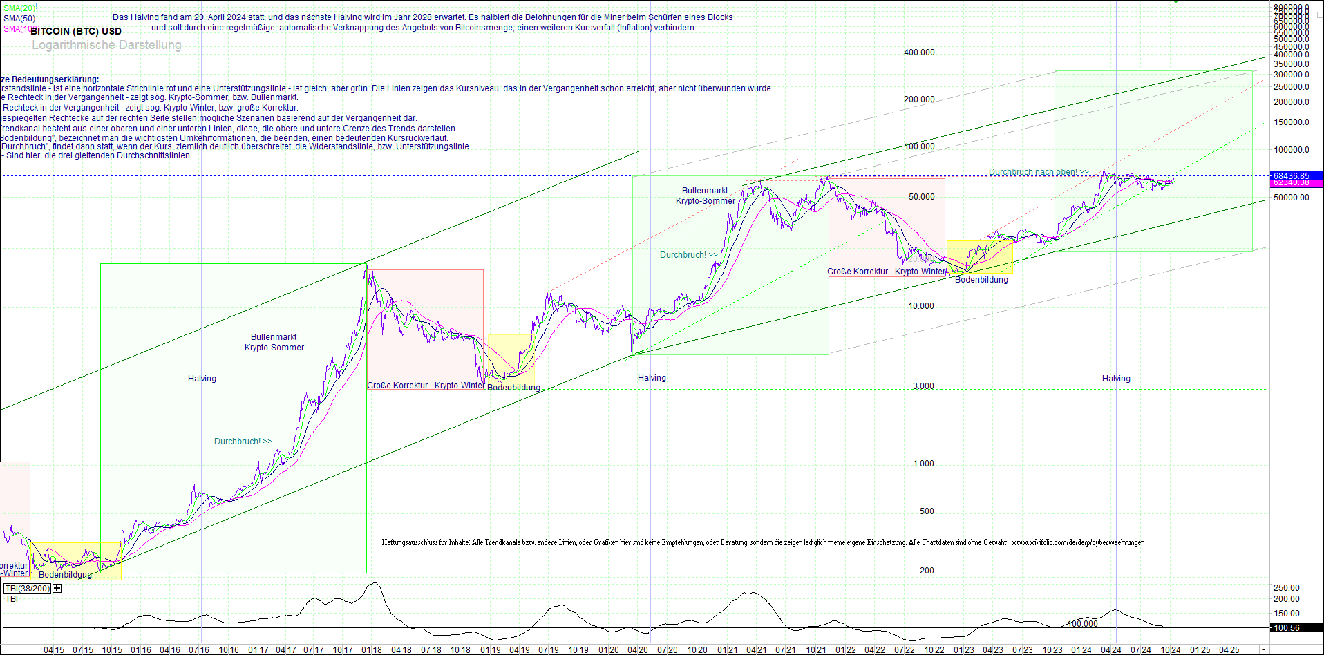 BITCOIN Chart am Abend, Oben Bitcoinzertifikat.