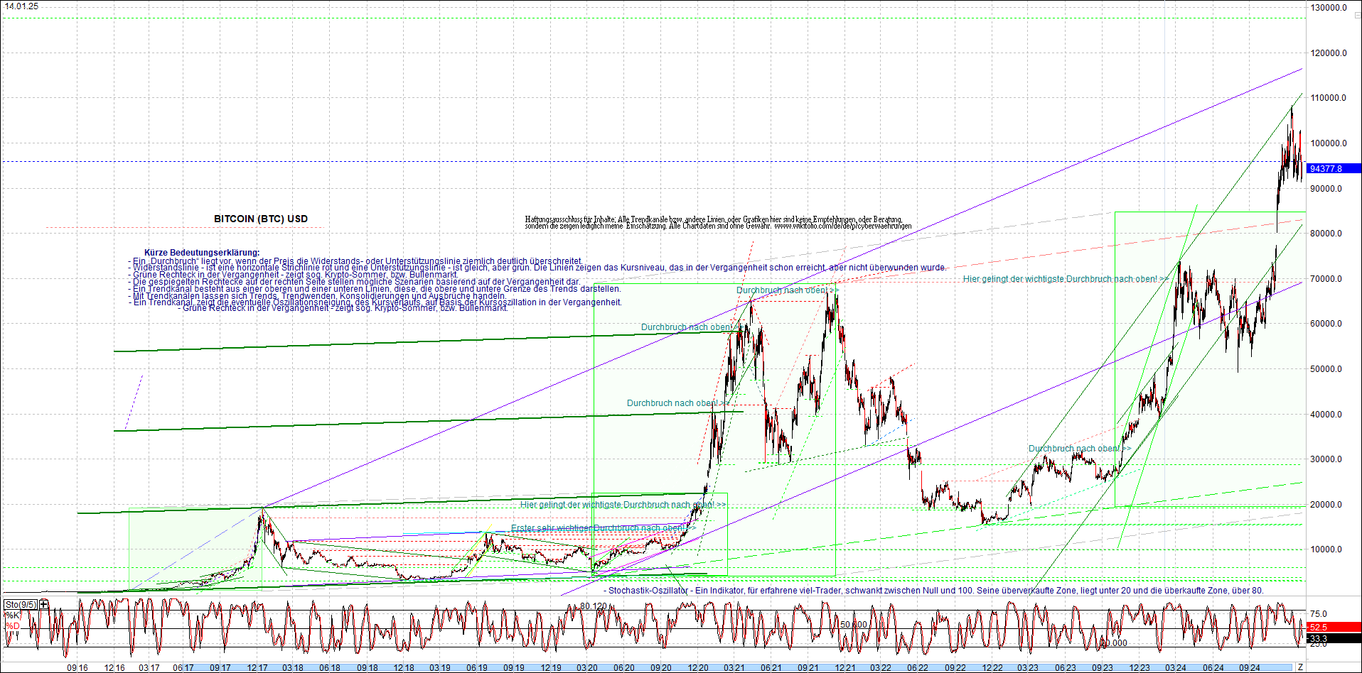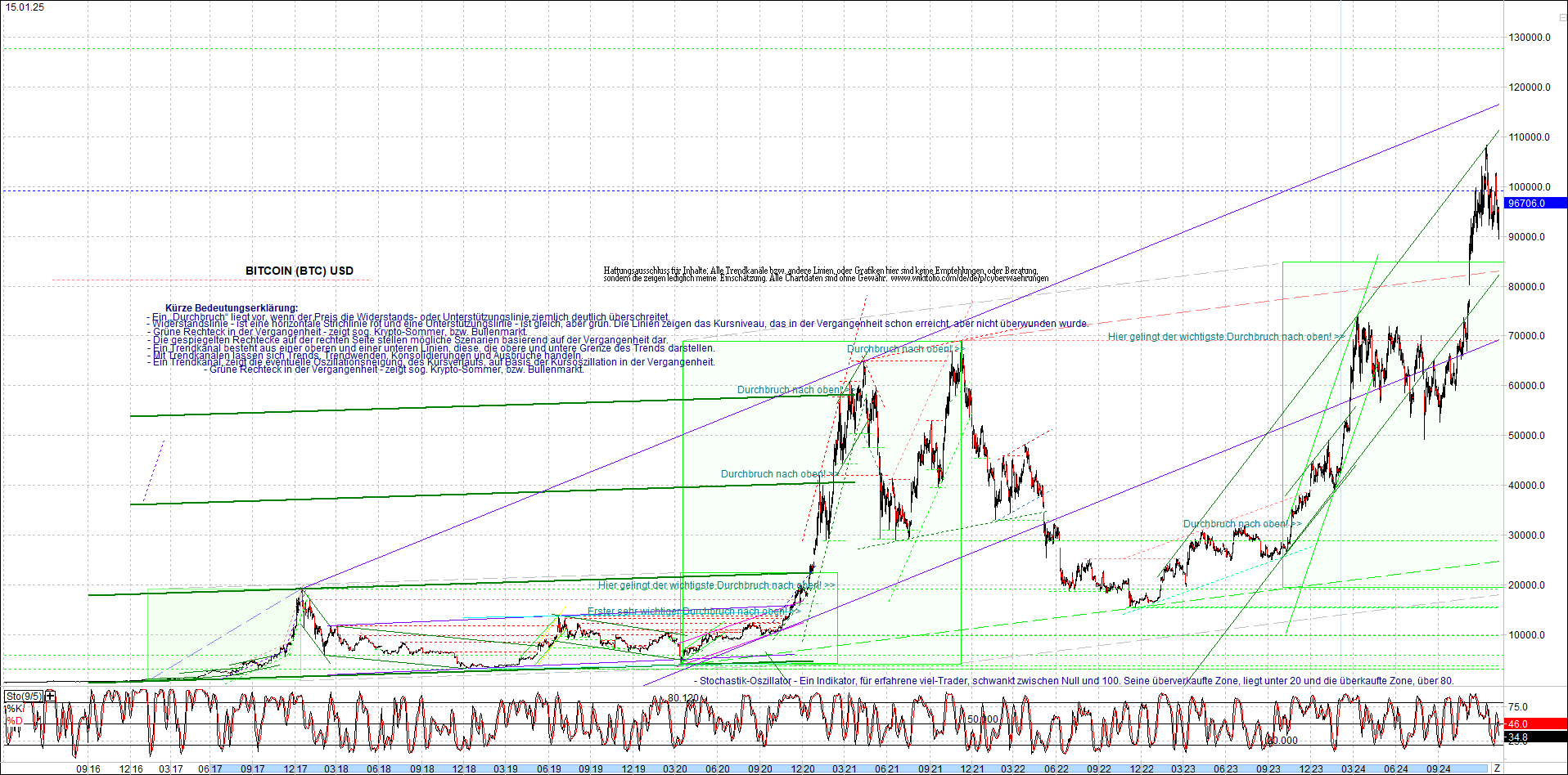 BITCOIN (BTC) Chart heute, sehr langfristig.
