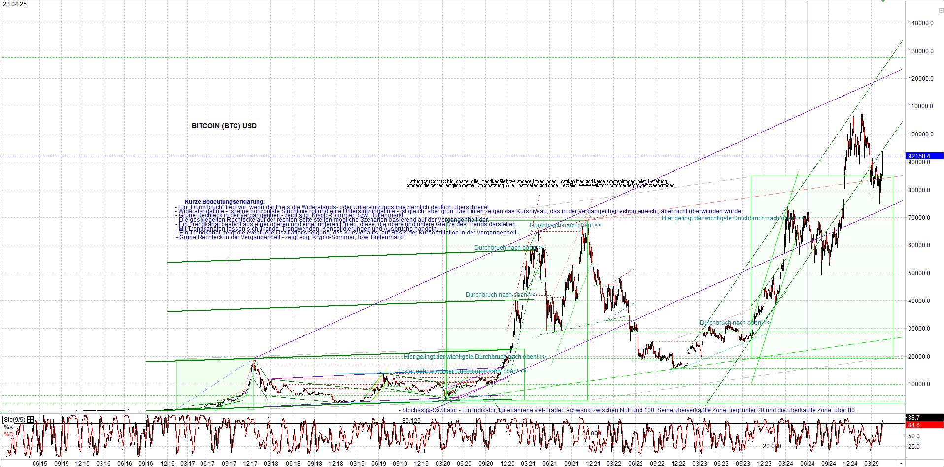 BITCOIN Chart am Abend, Oben Bitcoinzertifikat.