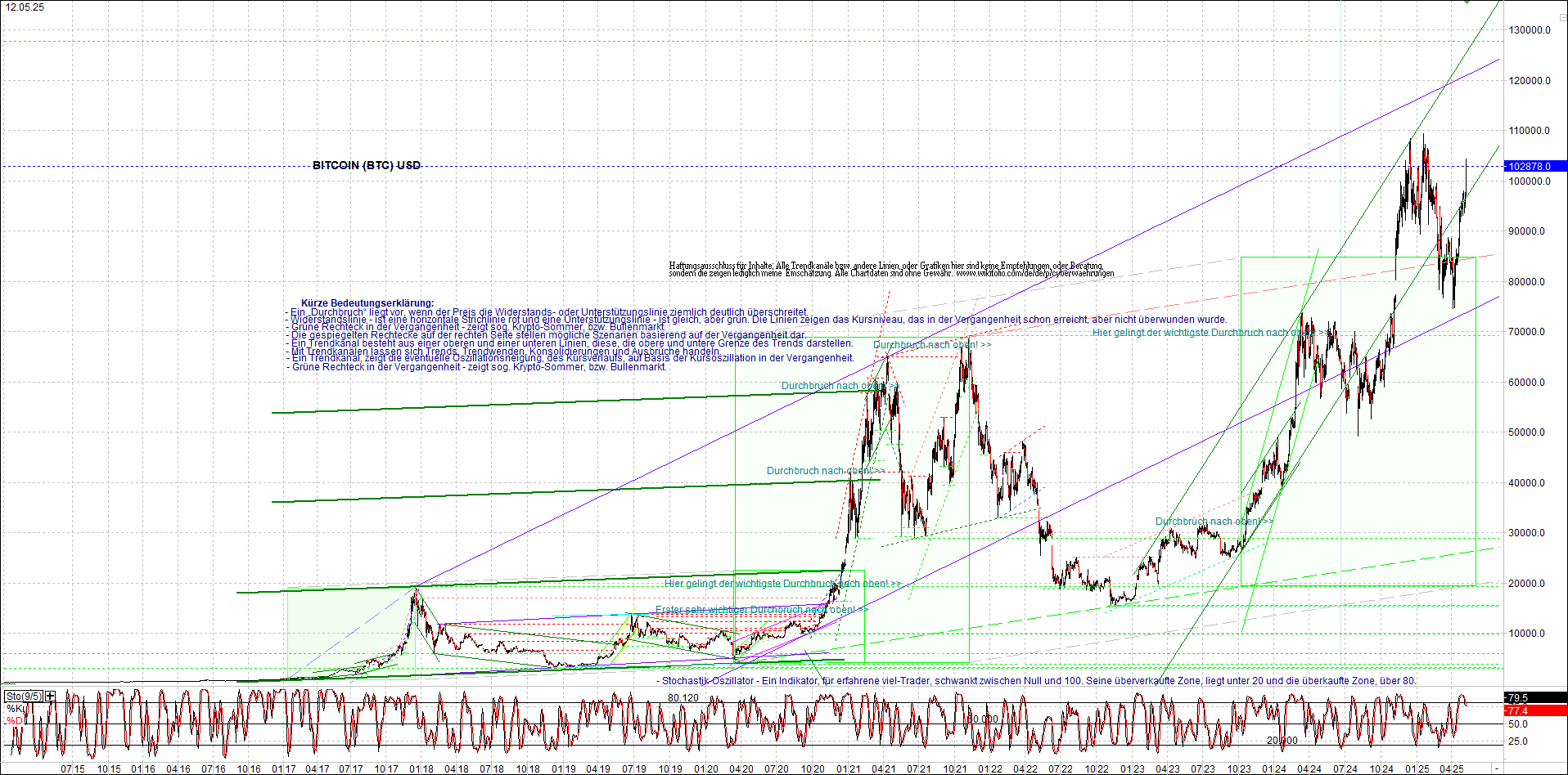 BITCOIN Chart am Abend, Oben Bitcoinzertifikat.