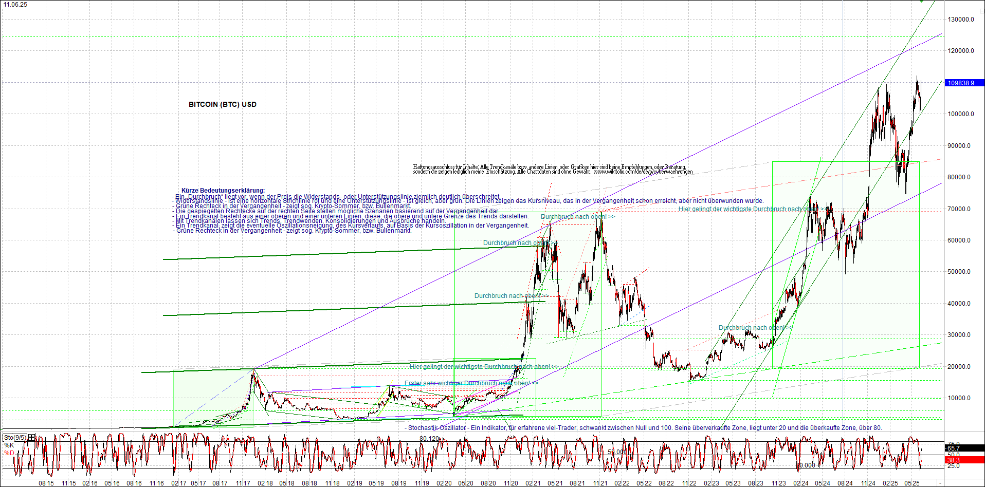 BITCOIN Chart am Abend, Oben Bitcoinzertifikat.