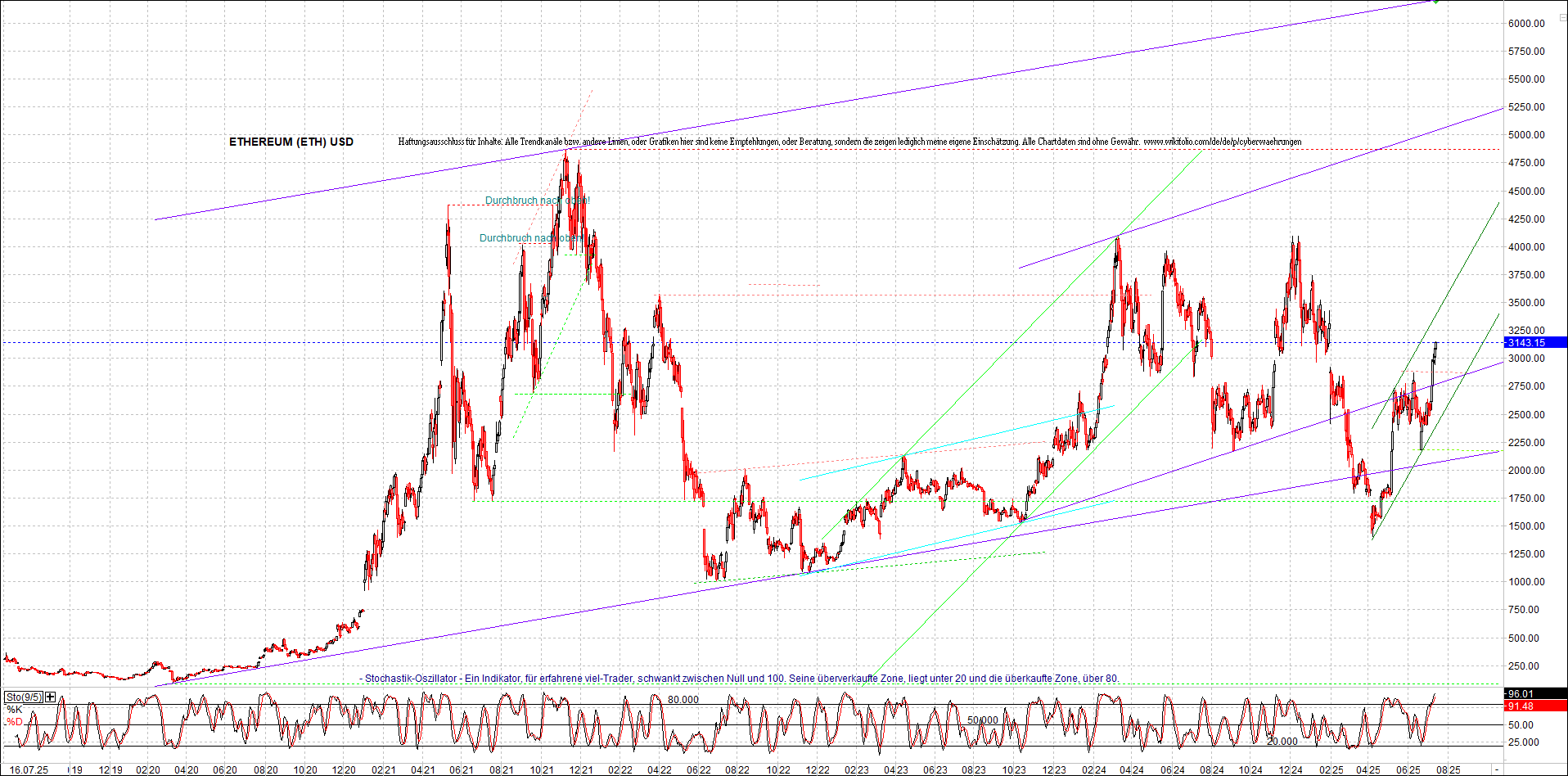 ETHEREUM Chart am Morgen, Oben Ethereumzertifikat.