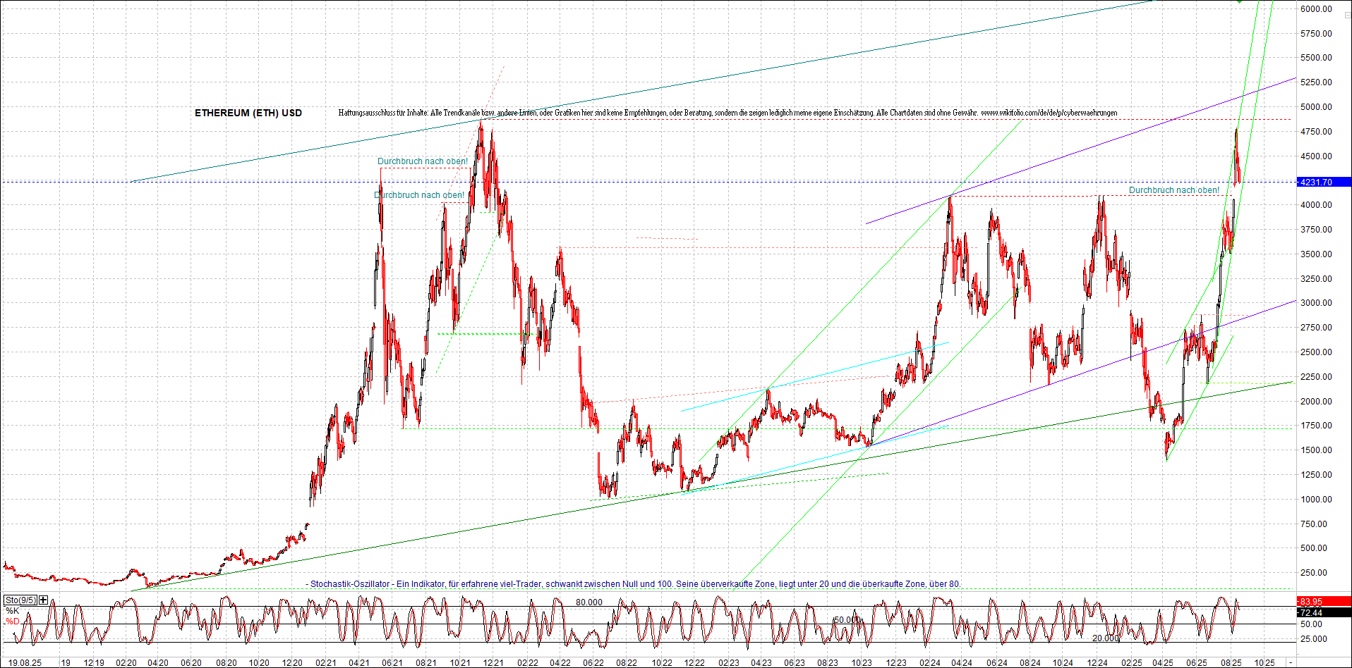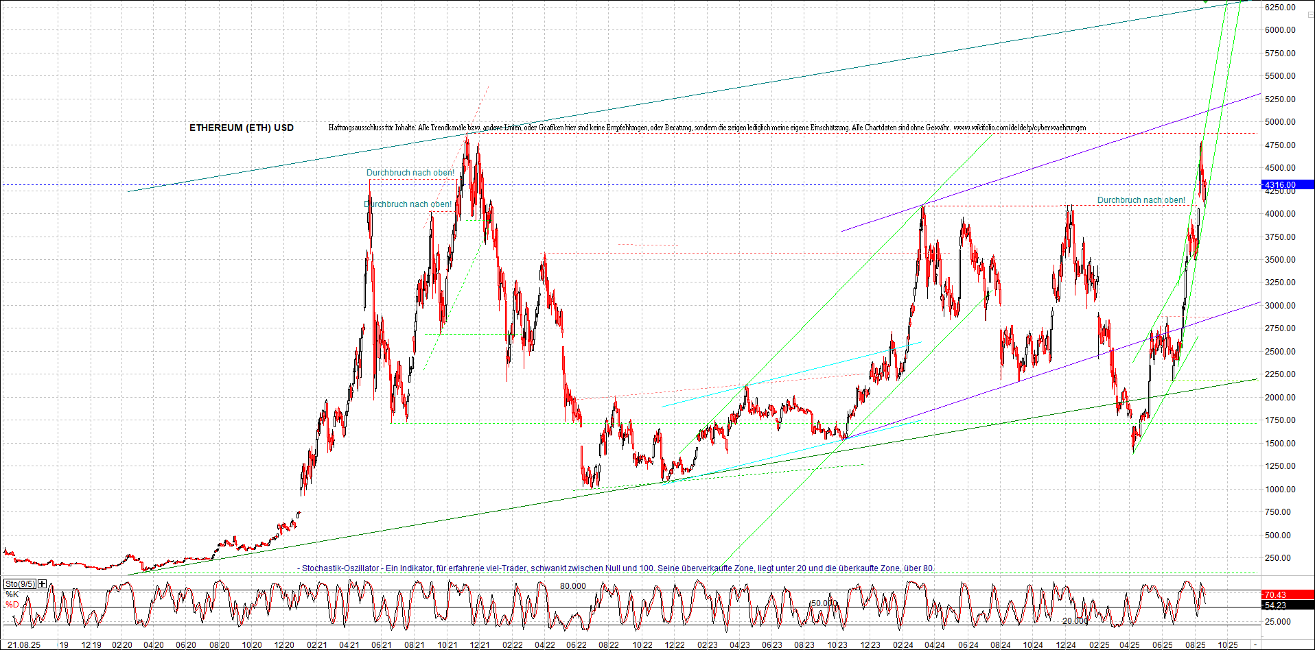 ETHEREUM Chart am Morgen, Oben Ethereumzertifikat.