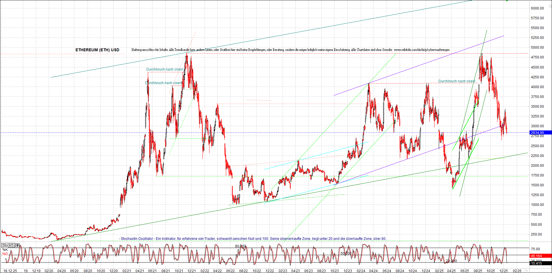 ETHEREUM Chart am Morgen, Oben Ethereumzertifikat.