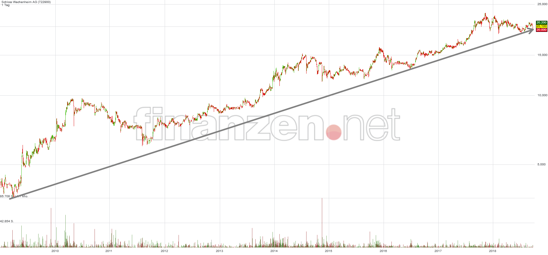 Sprache: Deutsch Emittent: Sektkellerei Schloss Wachenheim AG Niederkircherstraße 27 54294 Trier Deutschland Telefon: 0651-9988 0 Fax: 0651-9988 104 E-mail: info@schloss-wachenheim.de WWW: www.schloss-wachenheim.de ISIN: DE0007229007 WKN: 722900 Indizes: Börsen: Amtlicher Markt in Frankfurt (General Standard), Stuttgart; Freiverkehr in Berlin-Bremen