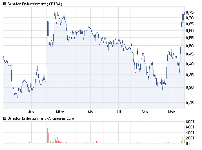 Bietet senator Optionsscheine an? Da wuerde ich jedenfalls die Finger davon lassen. Zu gefaehrlich bei den geringen Umsaetzen. Mir waere es jedenfalls recht, falls die Aktien hochgepuscht werden; glaube aber eher, dass sich da irgendwas anbahnt. Auf relativ gute Meldungen hatte sich senator in diesem Jahr noch kaum bewegt. Vielleicht wird das jetzt mit der Hoffnung nachgeholt, dass noch ein Schmankelr dazu kommt. Nur meine Meinung...Bei Onvista geht die Prognose bis Anfang 2012 auf ueber einen Euro.