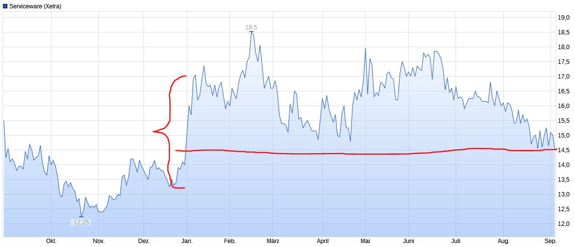 Auf EBITDA-Ebene wurden im Rahmen des Programms für beschleunigtes Wachstum in den ersten drei Quartalen 2,2 Mio. Euro investiert (Vj. 3,4 Mio. Euro) und auf EBIT-Ebene 2,6 Mio. Euro (Vj. 3,8 Mio. Euro). Das EBITDA lag zum Bilanzstichtag bei 1,6 Mio. Euro nach 1,1 Mio. Euro im Vorjahr (+47,7 Prozent). Das EBIT verbesserte sich um 38,3 Prozent von -1,2 Mio. Euro auf -0,8 Mio. Euro. Serviceware nimmt im Unterschied zu vielen anderen Technologieunternehmen keine, den Periodengewinn erhöhende, bilanzielle Aktivierung von Forschungs- und Entwicklungsaufwand vor.