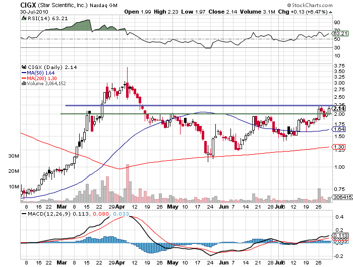 Star Scientific Inc. (CIGX) $1.86 Nasdaq