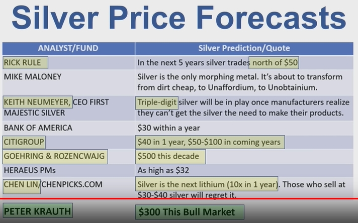 Die Silbervorräte werden erschöpft sein und die industrielle Nachfrage wird in den nächsten zehn Jahren „das gesamte verfügbare Silber aufsaugen“, was die Silberpreise steigen lasse und es zur besten Anlage seit Jahrzehnten mache, so David Morgan. „Wenn man einen langen Zeithorizont hat, etwa zehn Jahre oder mehr, kann ich mir nichts Besseres vorstellen als eine Silberinvestition", sagte er. „Silber wird irgendwann glänzen... aber es wird wahrscheinlich eine natürliche Kurve nehmen... eine natürliche Kurve ist, wenn die Industrie allein das gesamte verfügbare Silber aufsaugt und nichts mehr übrig ist.“ ...