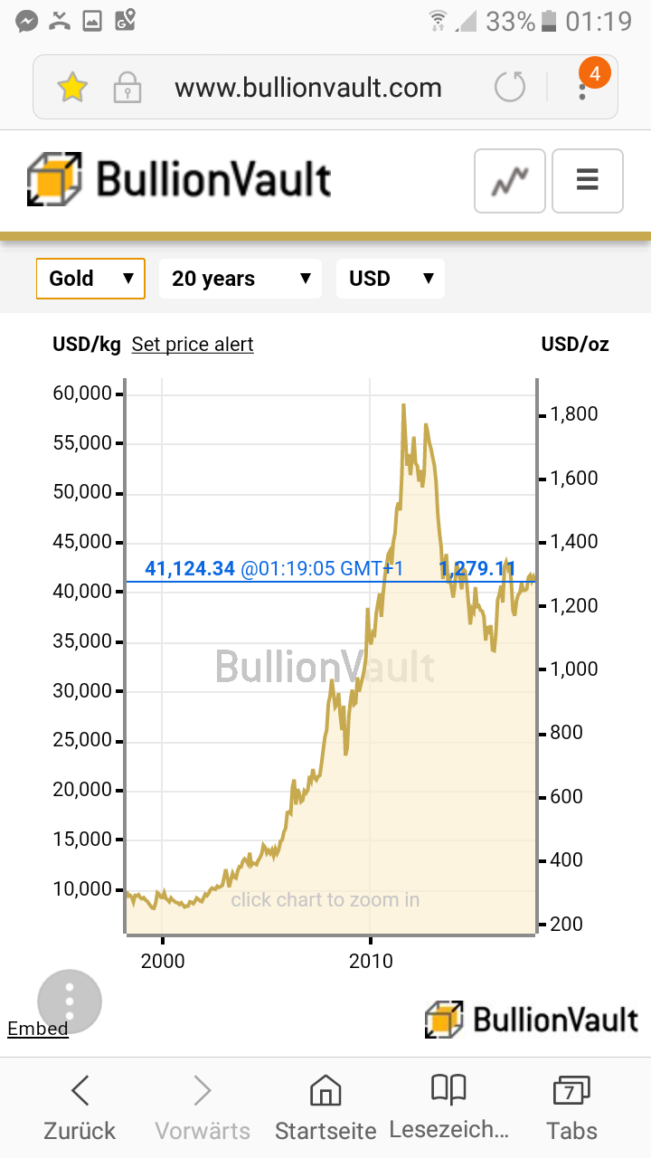 ....hin oder her: Ich bleibe für Gold und Silber in den nächsten 1-2 Jahren sehr bullish. Wenn man sich den Goldchart (Und Silber hängt völlig am Goldkurs) der letzten Jahre anschaut, von kurzfristigen Rücksetzern abstrahiert, ist die Tendenz klar: Gold erlebt seit 2005-10 eine gigantische Aufwärtsbewegung, die 2011 einen ersten Ausbruch von speculative mania erlebte. Dann gab es eine Korrektur, die ihren Höhepunkt 2015/16 erlebte: Gold sank heftig, aber die Korrektur endete auf einem Niveau, das immer noch weit über dem Ausgangsniveau liegt. Seit 2016 scheint der nächste ganz grosse Ausbruch nach oben Anlauf zu nehmen, der, da er von einem höheren Ausgangsniveau startet, auch eine noch höhere Spitze als 2011 erreichen dürfte. Ich erwarte in den nächsten 1-2 Jahren über 2000$ pro Unze Gold und folglich 50-75$ pro Unze Silber. Sobald diese Spitze erreicht ist, wird es dann eine scharfe Korrektur geben, gefolgt von jahrelangem Abstieg zu historisch normalen Preisen, also etwa 500-800$ pro Goldunze und vielleicht 10$ pro Silberunze. Ich glaube, dass Goldglied und Co Recht haben, dass EM zur Zeit ungewöhnlich teuer sind und mittelfristig sehr stark fallen und sich auf einem viel tieferen Niveau konsolidieren werden. Nur wird es mE vorher noch eine zweite und wahrscheinlich heftigere Spekulationsblase als 2011 geben. Meiner Meinung nach stehen wir relatuv kurz vor der Mitte des ab etwa 2006-07 begonnenen gewaltigen Edelmetall-Aufschwungs: In ein, zwei Jahren neue spekulative Megablase, dann Crash und mehrjähriger Abstieg, dann jahre- bis jahrzehntelange Konsolidierung auf sehr viel tieferem Niveau. In Erwartung dieser zweiten Riesenblase werde ich in den nächsten Monaten viel Gold umd Silber kaufen, ohne mich um irrelevante Tagesschwankungen gross zu scheren.