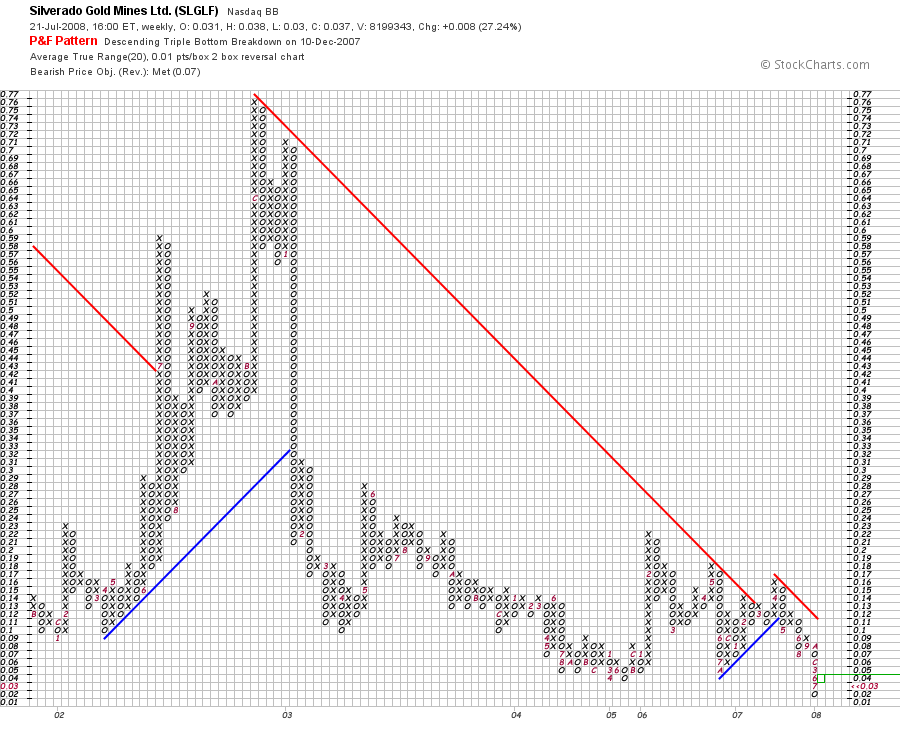 Last update: 10:38 p.m. EDT July 30, 2008 VANCOUVER, July 30, 2008 /PRNewswire-FirstCall via COMTEX/ -- Silverado Gold Mines Ltd. (the "Company") (SLGLF OTCBB, SLGL Frankfurt www.silverado.com), is pleased to announce that it has received completed antimony and gold mineral resource estimates for its Nolan Creek property from Thomas K. Bundtzen ("Bundtzen") of Pacific Rim Geological Consulting Inc., the independent mining consultant commissioned by the Company to prepare a NI 43-101 Technical Report. The Technical Report dated July 29, 2008 was filed today on SEDAR and is available at www.sedar.com. The Nolan Creek property includes the Workman's Bench Gold-Antimony Deposit, Koyukuk District, Northern Alaska and the Nolan Creek placer gold deposits. The mineral resource estimate tables below do not include the most recent drilling results which have been reported in the Company's news release dated July 21, 2008. Workman's Bench Antimony Mineral Resource Estimate Bundtzen has confirmed the inferred mineral resource estimate of 24,090 short tons of antimony and gold mineralized rock with an estimated grade of 38.69 percent antimony and 0.446 oz/ton gold, which contains 9,321 short tons of antimony metal and 10,737 ounces of gold. The following table summarizes the mineral resource estimate for the Workman's Bench Gold-Antimony Deposit (effective July 2, 2008): --------------------------------------------------