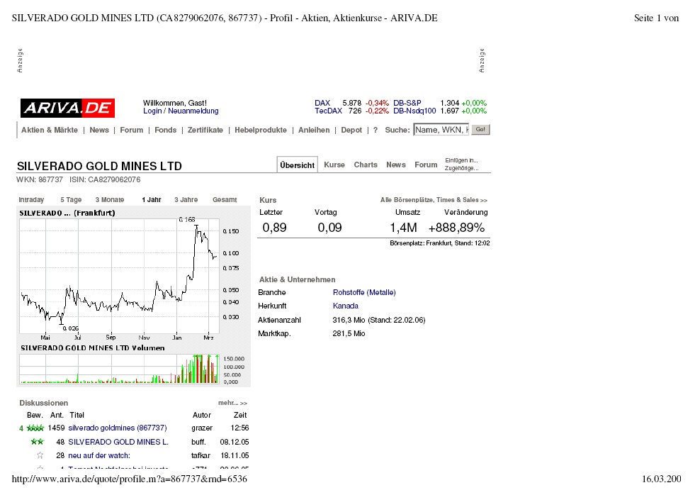 Aber wieder einmal nur über die paar Goldnuggets im "alter Schwede- kanal" und nicht über green fuel ;-( Das bringt die Aktie nicht wirklich auf 0,89 ;-)