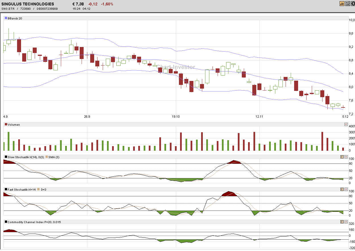 Wie weit wird der Kurs noch sinken; Alle Stochastiken sind schon am Boden angekommen, es wird höchste Zeit, dass dieser die Richtung ändert. Wo seit Ihr aller der Meinung das der Boden noch nicht gefunden ist. Was machen die Singulus-Mng, die sollen mal eigene Aktien kaufen. Dann könnte wieder etwas vertrauen zurückkehren.