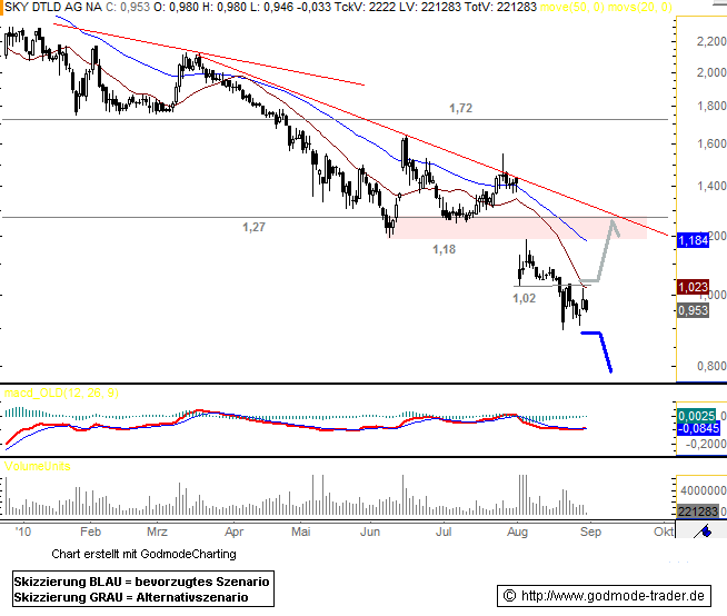 Sky-Chef Brian Sullivan gibt ordentlich Gas! 3D-Kanal startet im Oktober 2010. Desweiteren sind die Verhandlungen mit einer Reihe von Kabelkonzernen positiv abgeschlossen bzw. kurz vor der Einigung. Auch Kabel-Deutschland (erlebt z.Zt. einen kräftigen Zuwachs aufgrund von Tripleplay) kann sich ein Scheitern mit Sky nicht erlauben, zumal beide Seiten nur gewinnen können. Der Turnaround steht kurz bevor. Gratulation!