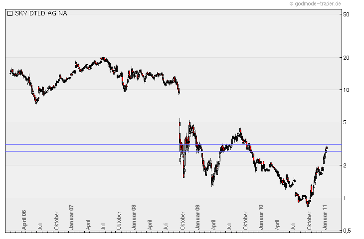 Am 17.01.2011 ist bei Sky Deutschland AG das Chartsignal Momentum Impuls aufgetreten. Das Chartsignal Momentum Impuls ist ein long Signal.
