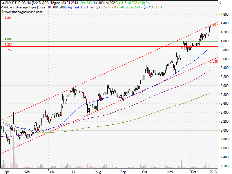 ich habe heute einen Teil meiner Sky-Position verkauft in der Hoffnung, dass der Kurs noch einmal ein wenig zurückkommt. Aktuell bewegen wir uns am oberen Ende des Trendkanals, ein Ausbruch darüber bräuchte meiner Meinung nach gute News. Viel dürfte vor den Zahlen aber nicht mehr kommen.