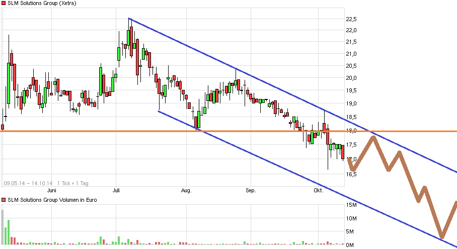 jetzt zur Abwechslung sogar wieder die Unterseite des Abw.trendkanals tangieren würde oder ihr zumindest sehr nahe käme. Man sieht ja an einem Tag wie heute wie schnell da eine gewisse Abwärtsdynamik intraday aufkommen kann. Wäre keine so wirklich große Entfernung mehr bis zur Unterseite. Könnte man in der Nähe der Unterseite als Tradingchance für einen neuen strategischen Einstieg nutzen mit relativ engem SL. Eine Alternative (etwas konservativer) wäre halt zu warten, bis man mal aus dem Abw.trendkanal nach oben ausbricht. Dann hätte man bei einem Einstieg schon etwas positiven Schwung im Rücken anstatt wie jetzt noch eine Abwärtsbewegung.