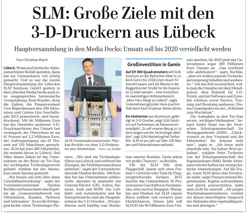SLM Solutions Group AG und GE Germany Holdings AG vereinbaren Zusammenschluss; GE Germany Holdings AG kündigt freiwilliges öffentliches Übernahmeangebot für sämtliche Aktien der SLM Solutions Group AG an