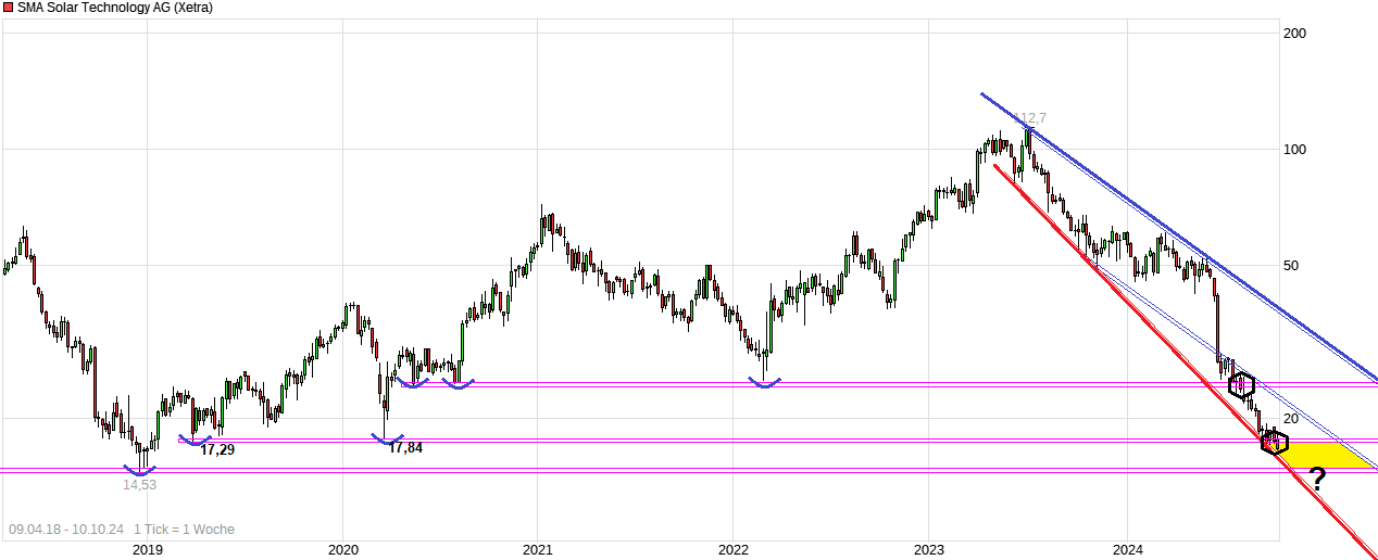 Wer auf dem vermeintlich billigen Niveau Aktien zukauft, kann hier ganz schnell mit 50% Miesen aufwachen... next stop Einstelligkeit?