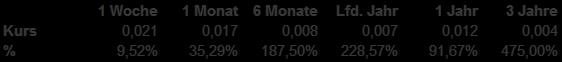 Kurs in AUS bleibt stabil bei den 0,026-0,028 AUD. Berlin wieder in Linie mit AUS mit 0,018 €.