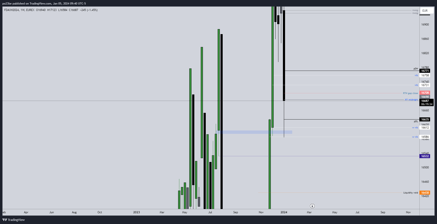 FDAX hat mit den news sellside geholt (wichtige News immer abwarten) - er ist knapp in ein weekly FVG rein.