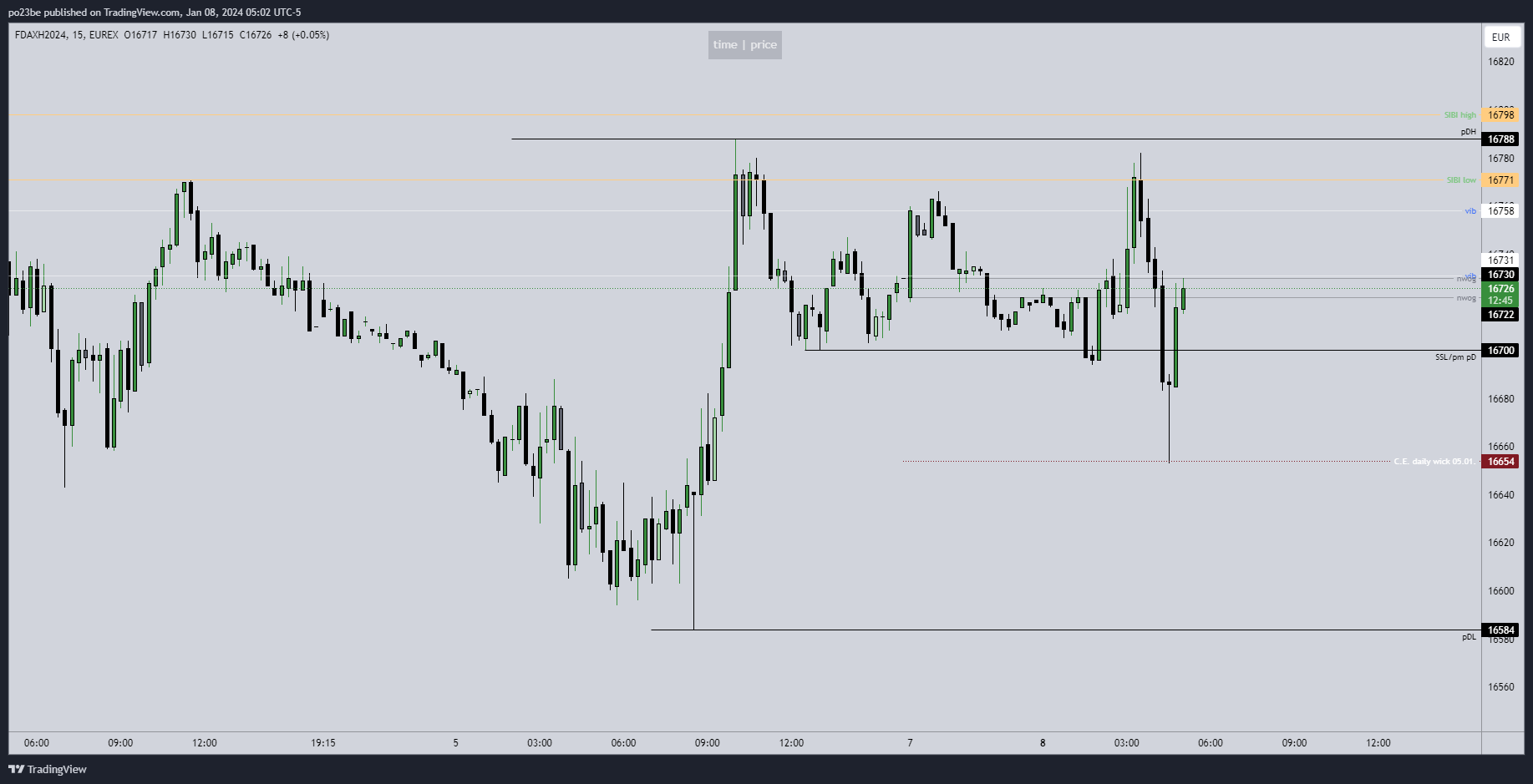 Für den Fdax könnte das heißen, dass der lange obere Wick (daily) vom 2. Jänner besucht wird - bei ca >16950. Halte ich definitiv für möglich und ist für mich derzeit wahrscheinlicher, als dass er jetzt weiter abstürzt. Wäre ein schönes Wochenziel