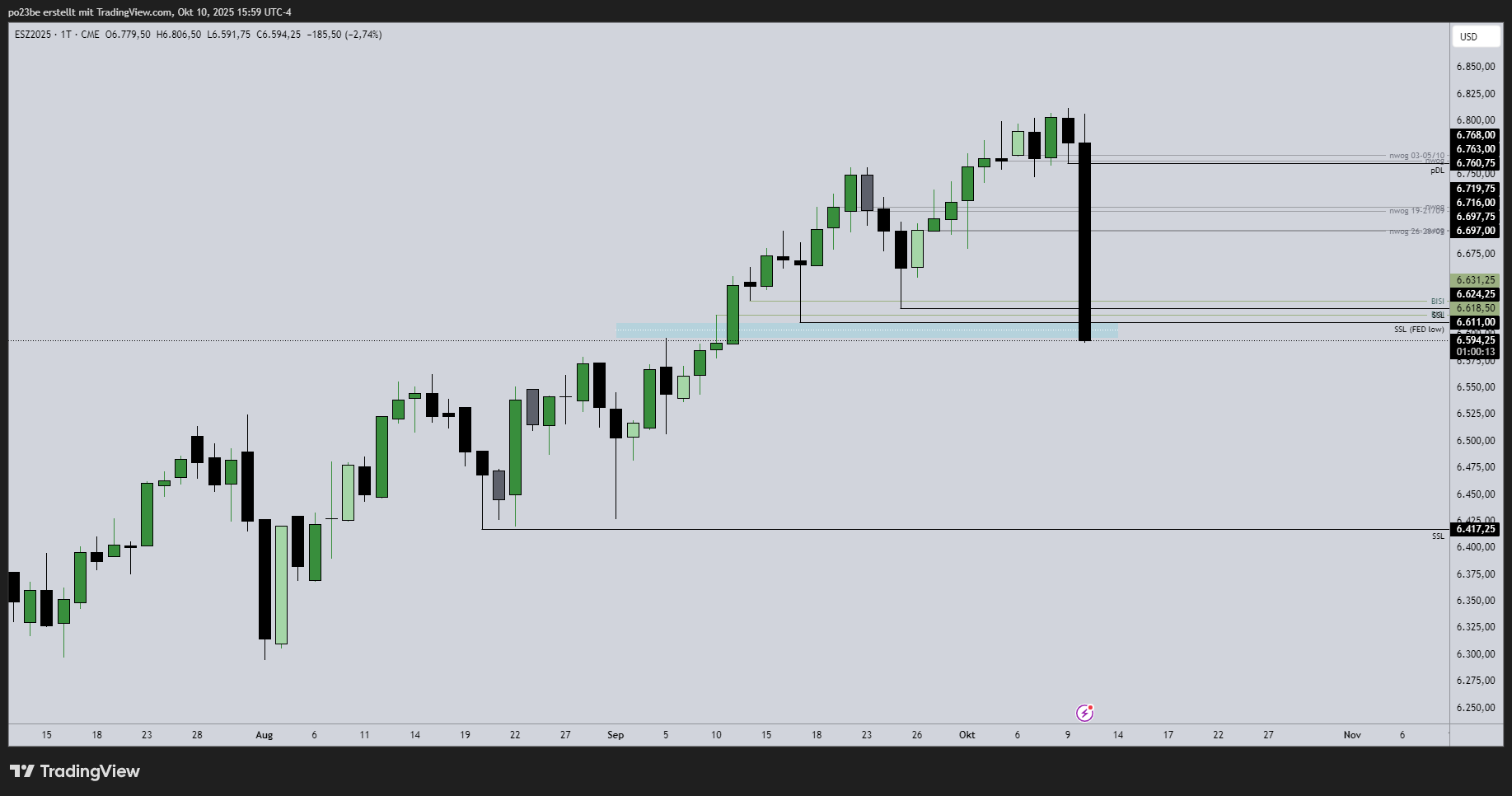 NQ hat kurz nach Eröffung eine Range gebildet, da muss er erst wieder drüber kommen. Es wurden einige Kontrakte gehandelt in dieser Zone. Wird sich jetzt zeigen, ob all die Verkäufer diese Zone verteidigen wollen, dann käme es nur zu einem Pullback dort hin und dann wieder runter.