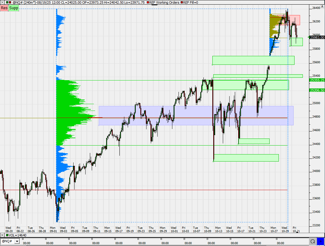 Die Bewegungen ab den Hochs von Mi/Do sehen korrektiv aus mit leichter Tendenz nach unten. Wir befinden uns immer noch in der Range vom letzten Donnerstag, das Tief vom letzten Do wurde nicht unterboten. Heute kleines GAP up, wurde bisher noch nicht geschlossen. Den obere rote Bereich könnte man zurück ziehen zur Mittwochs Value, damit bekommt er für mich eine grössere Bedeutung.