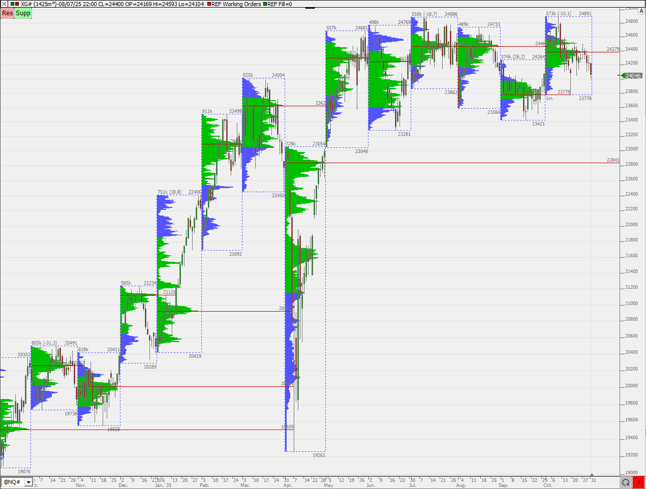 Der Oktober hat einen schönen Value-Bereich, welcher den Namen auch verdient. Das ist längst nicht bei allen so, aber da habe ich meine Ansichten. Vorerst konzentriere ich mich, was über dieser Value geschieht, solange wir darüber sind. Erst wenn wir unter der Oktober Value sind, ändert sich im grossen Bild etwas, aber dann sind wir auch schon ca 2000 Punkte unter dem ATH.