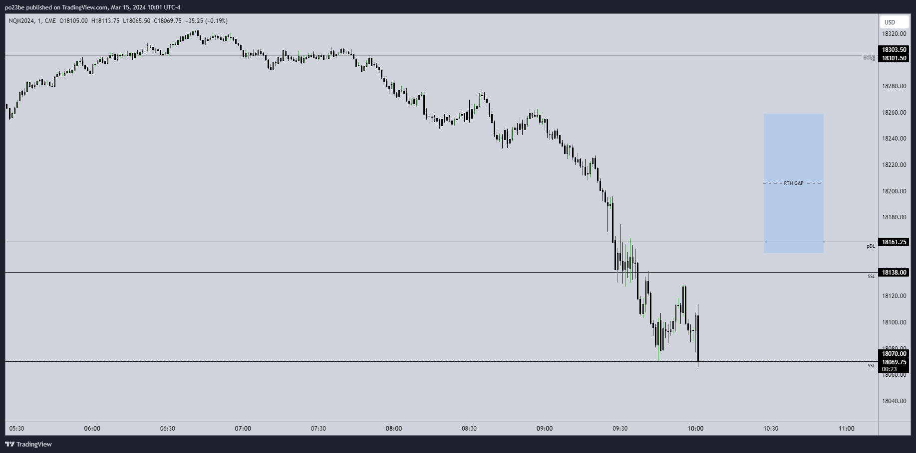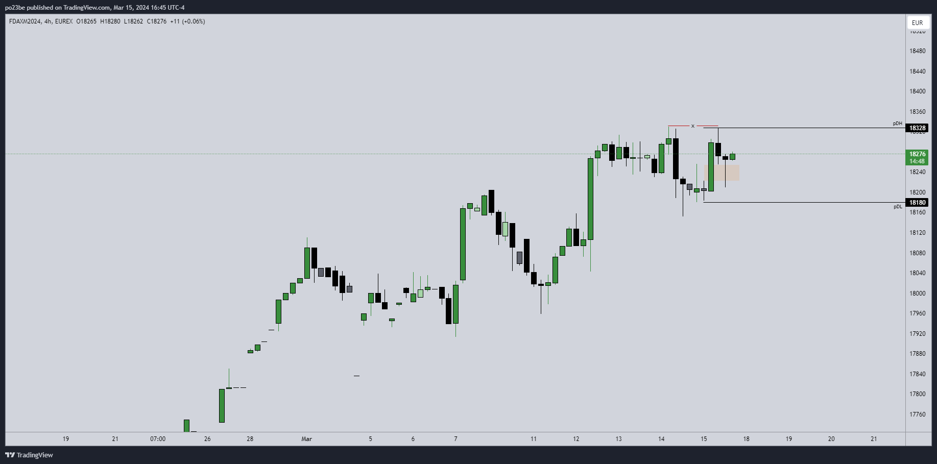 NQ hat die Vorwochentiefs geklärt, befindet sich aber noch in einem "bullischen" BISI (FVG). Von der Gesamtstruktur würde ich aber sagen, dass das nicht halten wird. Er hätte idealerweise nicht so oft in das BISI zurückkommen sollen - es scheint ihm die Kraft auszugehen, gefühlt...