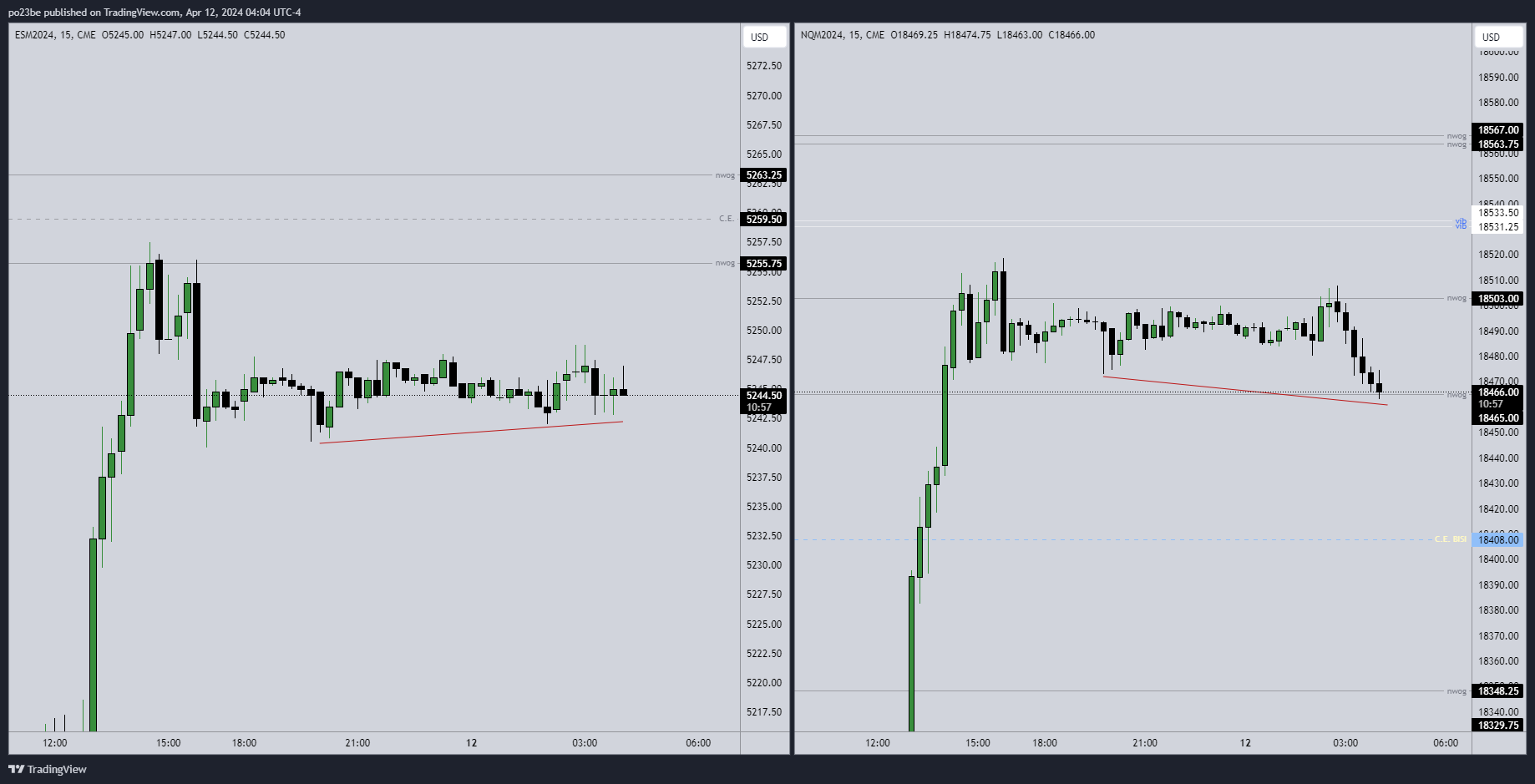 Schade, dass er die 18000 heute nicht genommen hat, das wäre schöner gewesen... Wir stecken wieder in der Range fest. ES hat das gestrige Tagestief genommen, NQ nicht (das ist eigentlich immer ein kleines Warnzeichen). NQ aber das gestrige Tageshoch, ES nicht... Wo gehts hin? Ich weiß es nicht. Oben die 18626 unten die 18000..