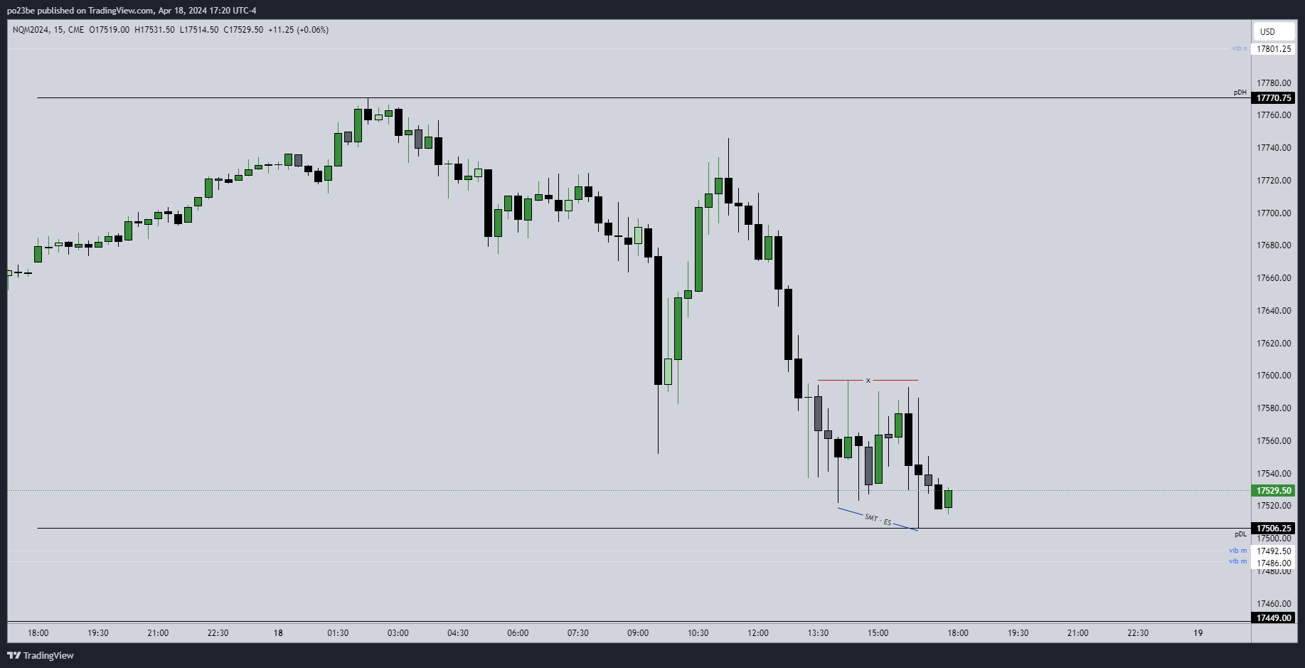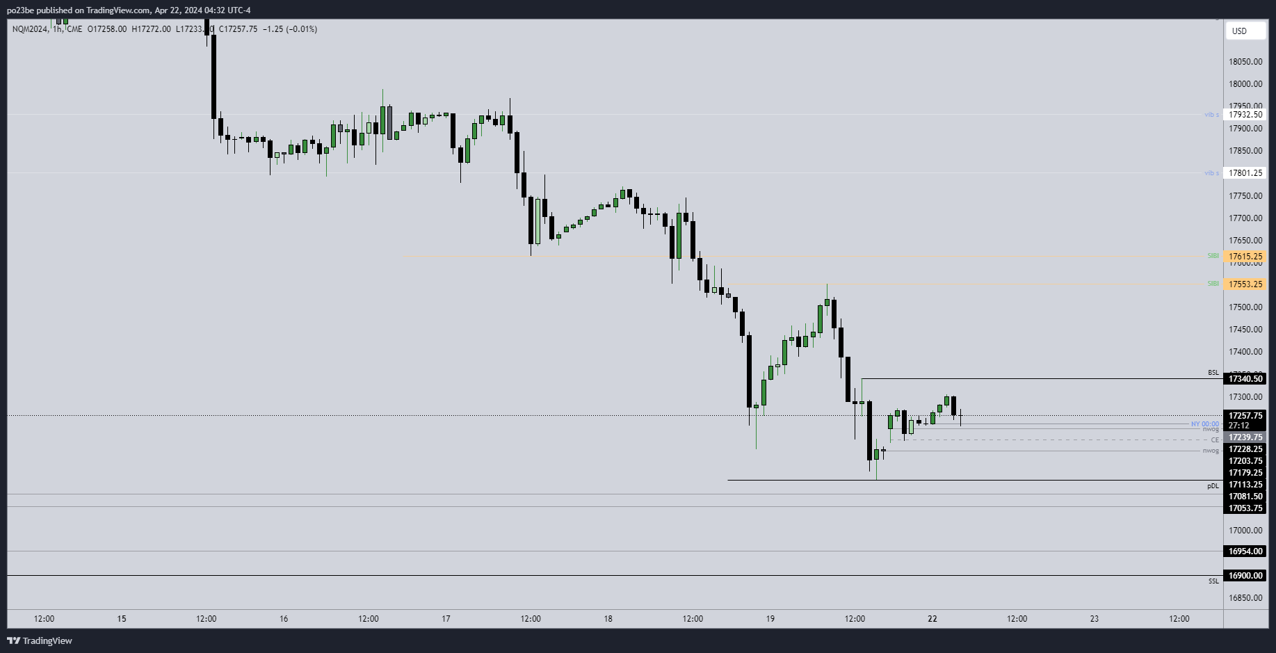auf das schaue ich morgen im NQ das fib level ist der wick vom 4 stunden chart. 50% davon liegen im 1hr FVG.. möglicherweise so - unter 17486 ist er im Monats-FVG, die 17449 sind noch ein daily/weekly swing low, die wird er noch mitnehmen.