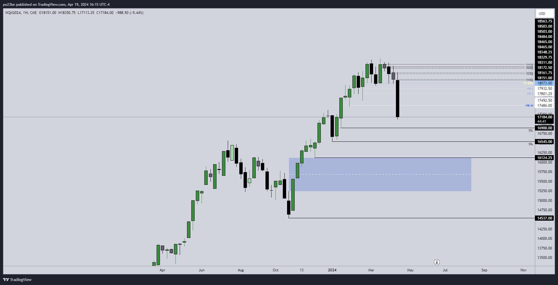 den weekly Chart im NQ nochmal angeschaut.. Das sieht nicht gut aus - Bauchgefühl und Chart liegen oft auseinander.. Er hat das weekly BISI vollkommen ignoriert (auch unterbei geschlossen bzw wird)- und da ich auch den Dollar um einiges noch höher sehe - wirds auch weiter runterrutschen