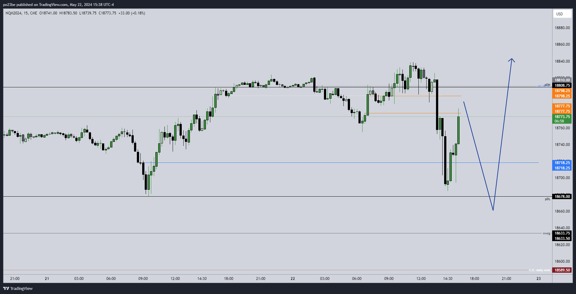 ansonsten nochmal über das daily swing high 18887, max pain wäre davor nochmal über das ATH...