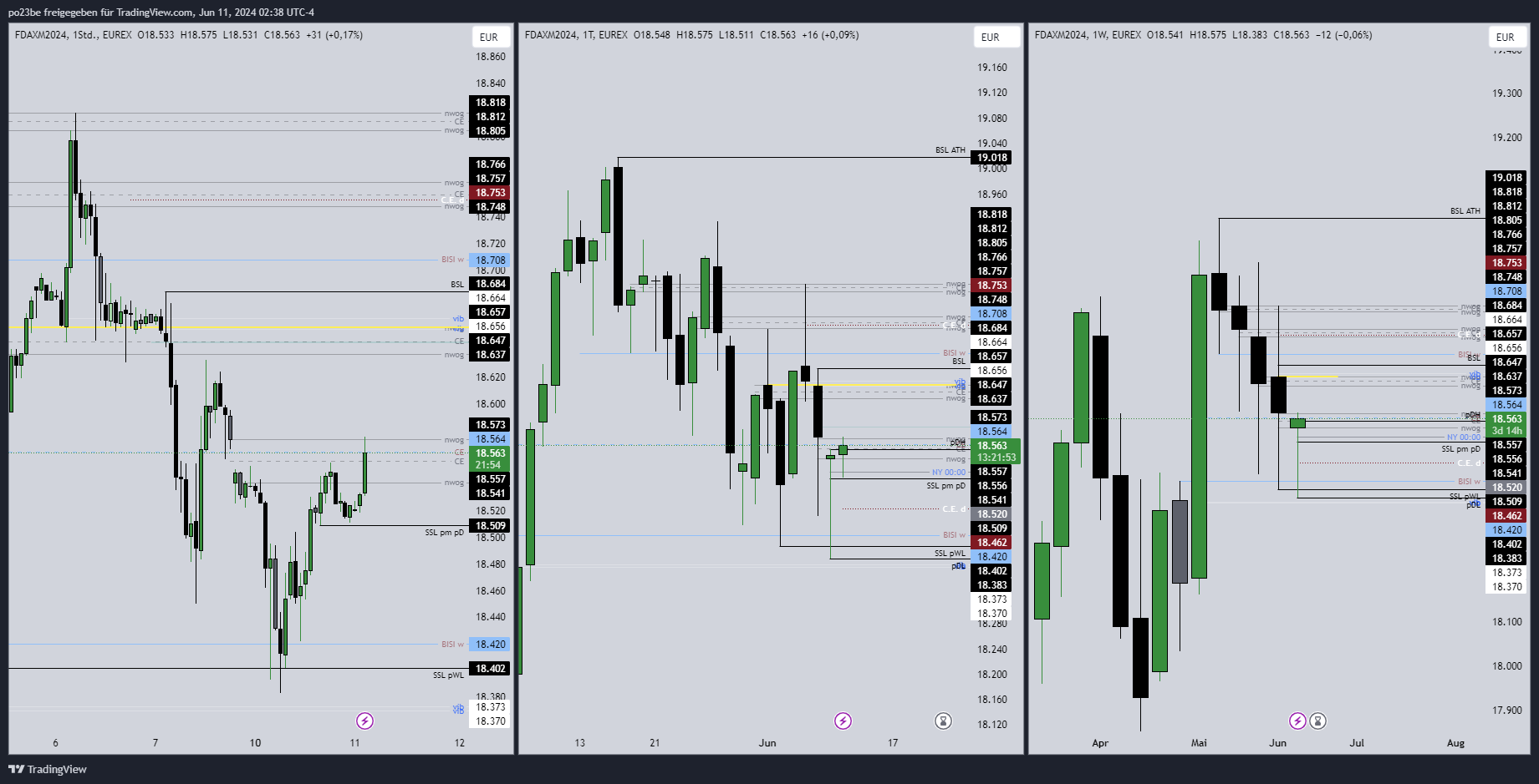 wenn unten ein weekly target genommen wird - wie zB Vorwochentief, dann ist das sell-program erstmal beendet - das nehme ich einfach mal an. Es gab auch kein Wochenclosing unterhalb CE vom weekly FVG.