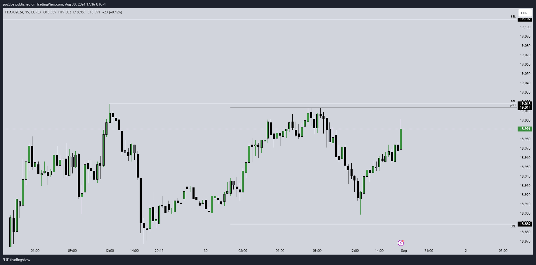 NQ in der späteren Range von gestern. Nur zu Handelsbeginn kurz darunter. Mal schauen, wie stark man auf die NVDA Zahlen reagiert. Vielleicht hoch ins daly FVG für die nächste Korrektur.