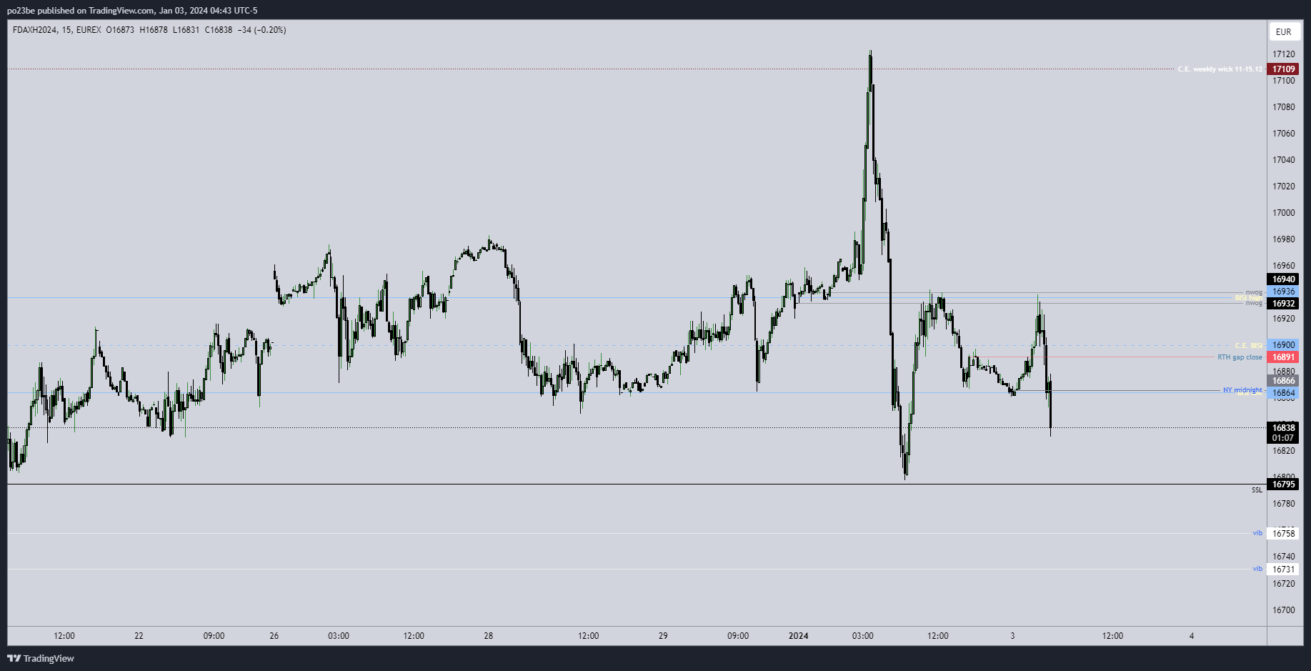 BSL von der gestrigen am-session lag bei 16715. SSL wurde genommen, danach gab es den MSS - im 30sek (ich weiß, nur für die freaks) in der vol im balance long rein und über 16715 wieder raus..
