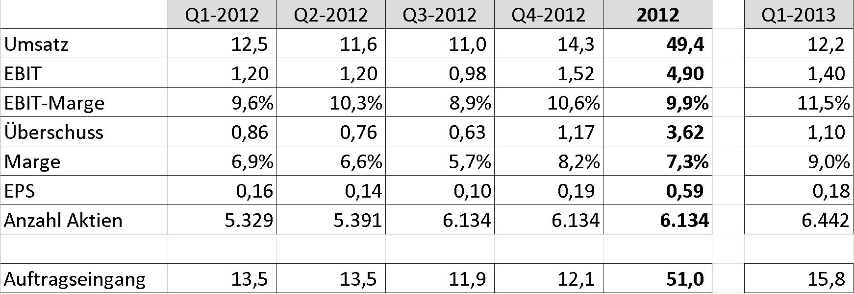 Auftragseingang - dass wir in 2013 die Vorjahreszahlen wieder übertreffen